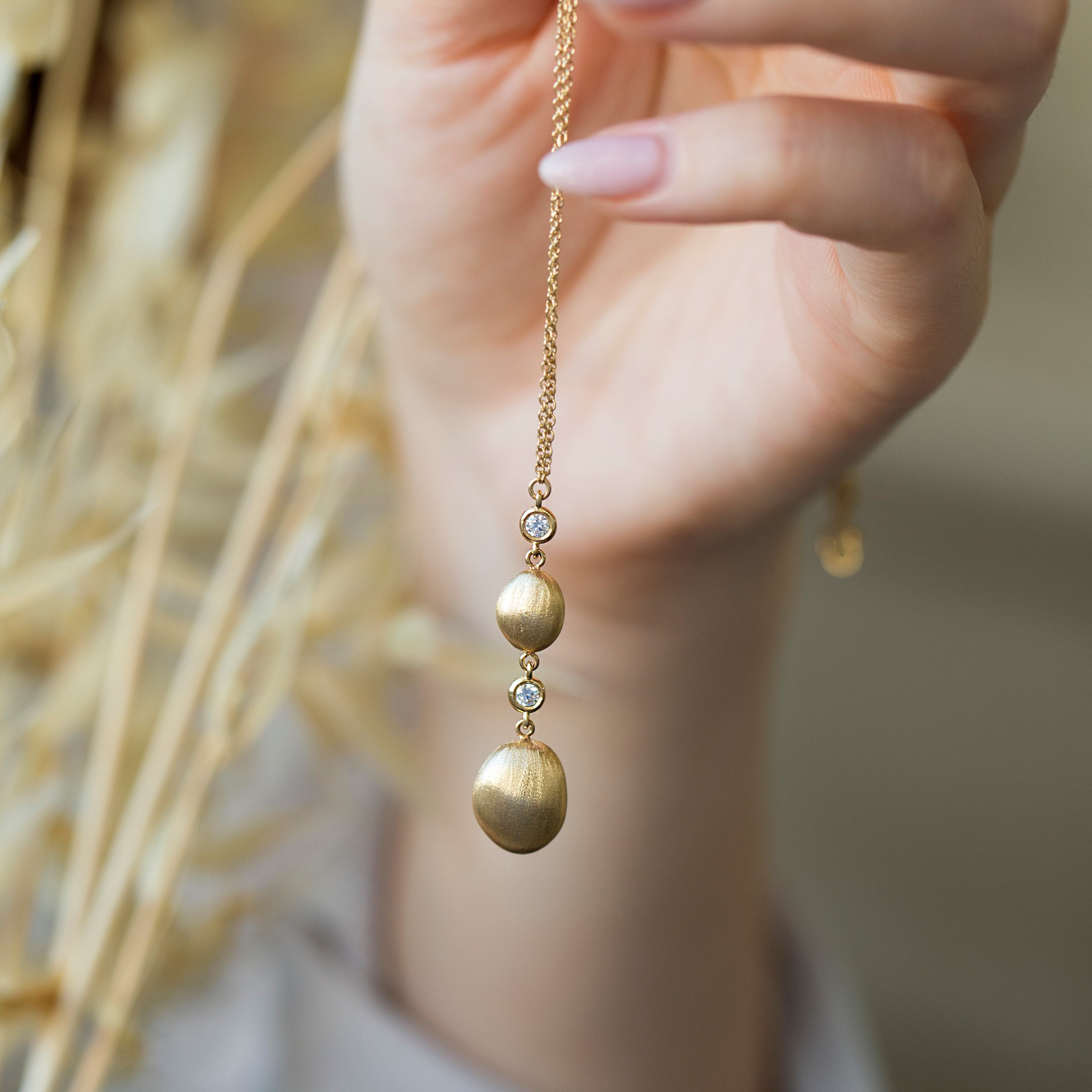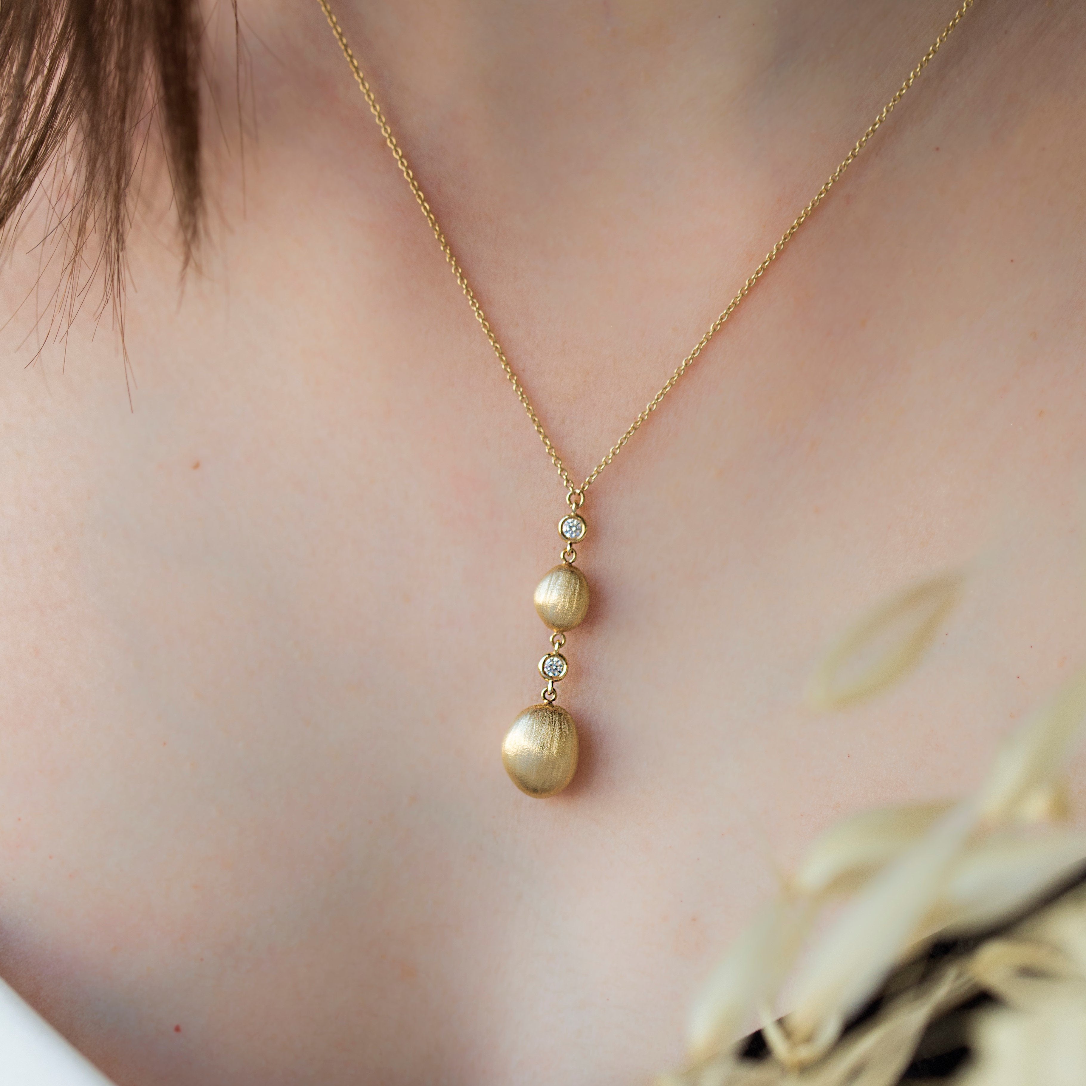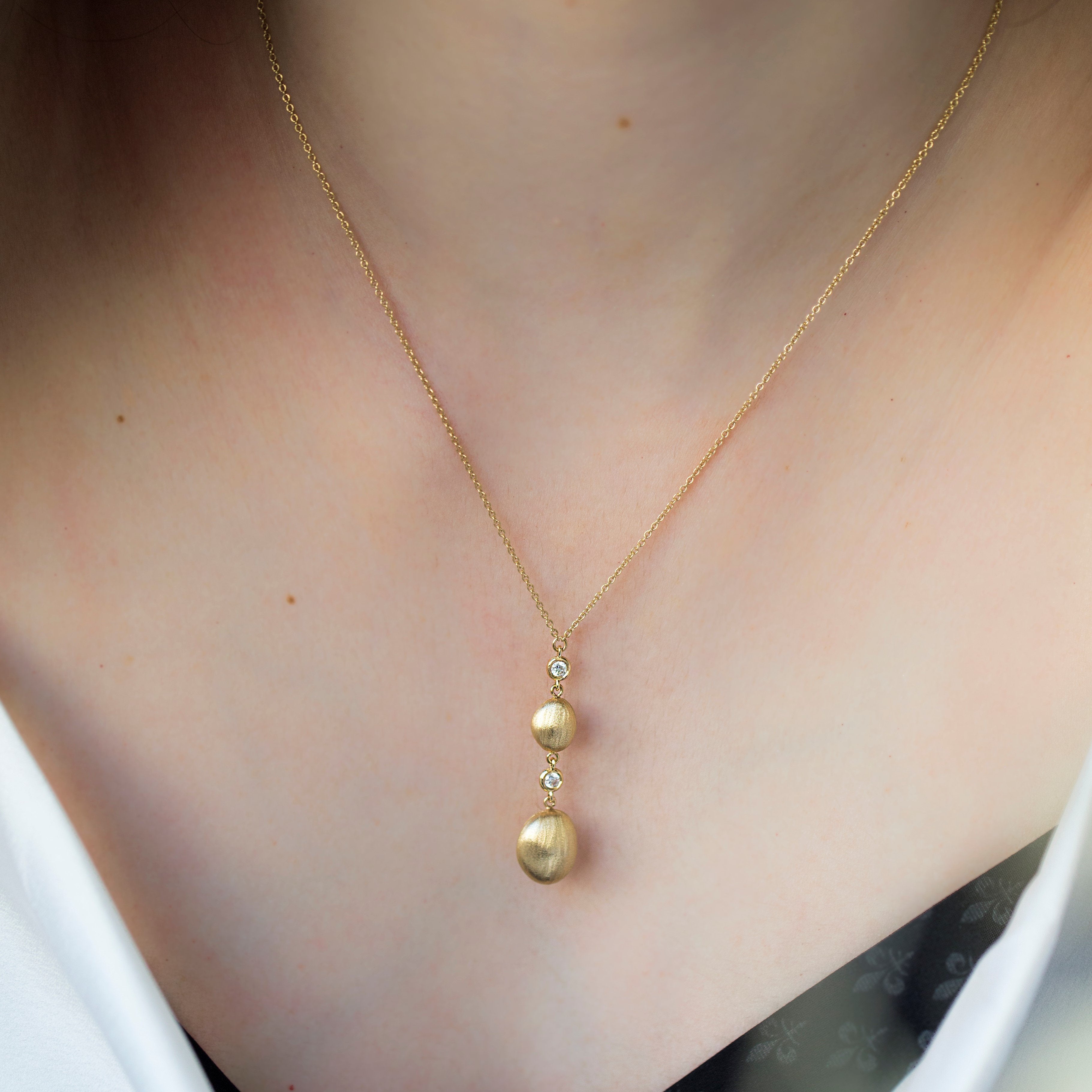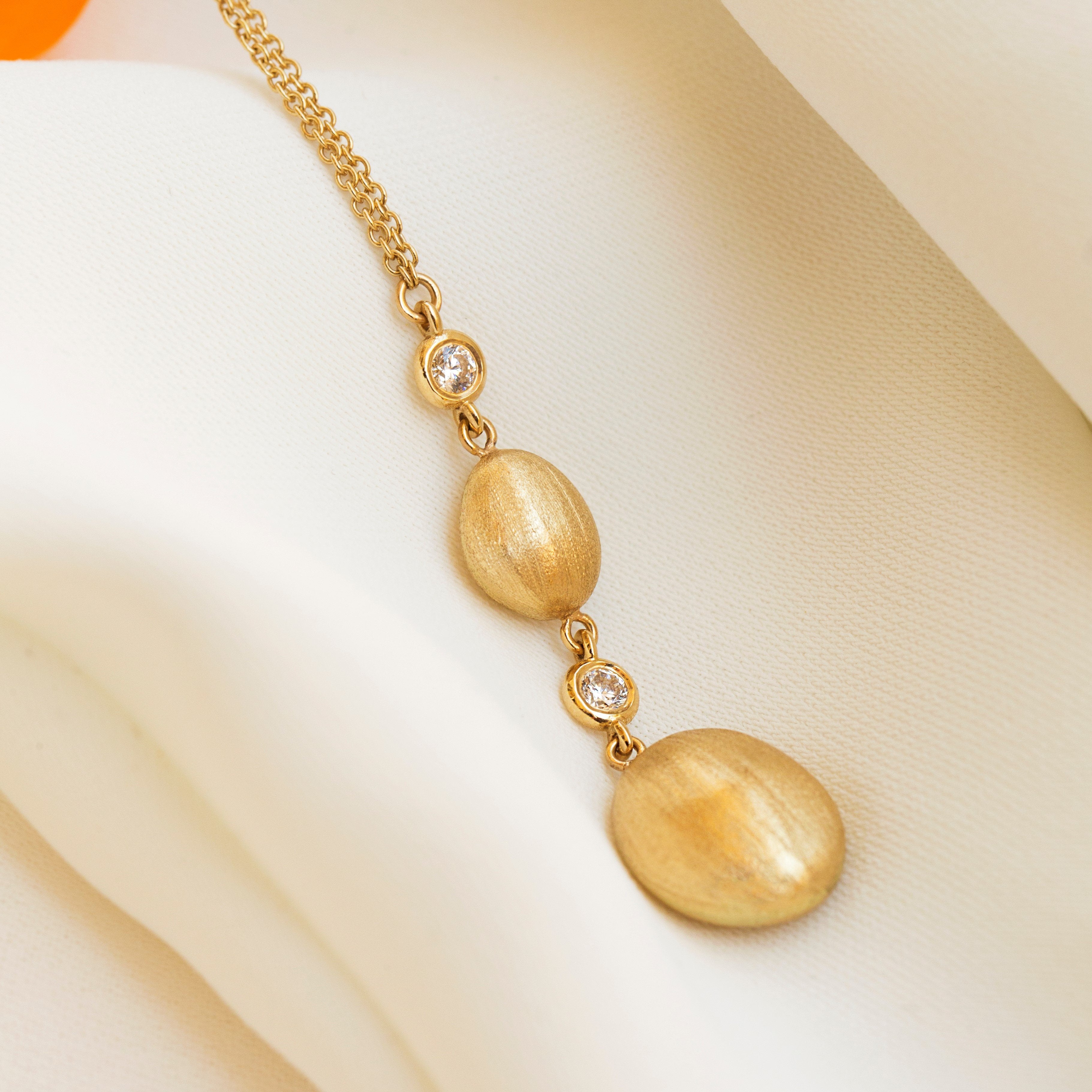 An Elegant Diamond Bead Necklace made out of 14K Solid Gold or 18K Solid Gold. Choose a Yellow Gold, White Gold or a Rose Gold finish.