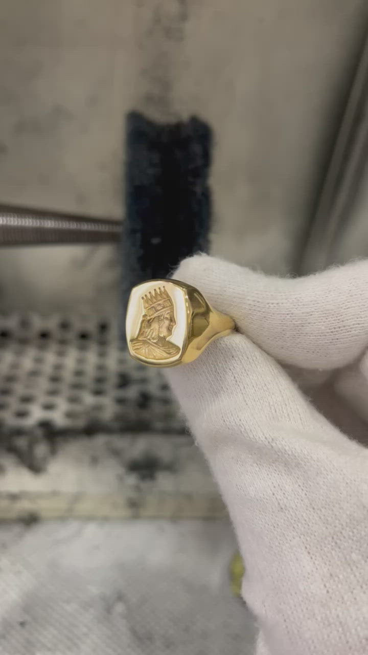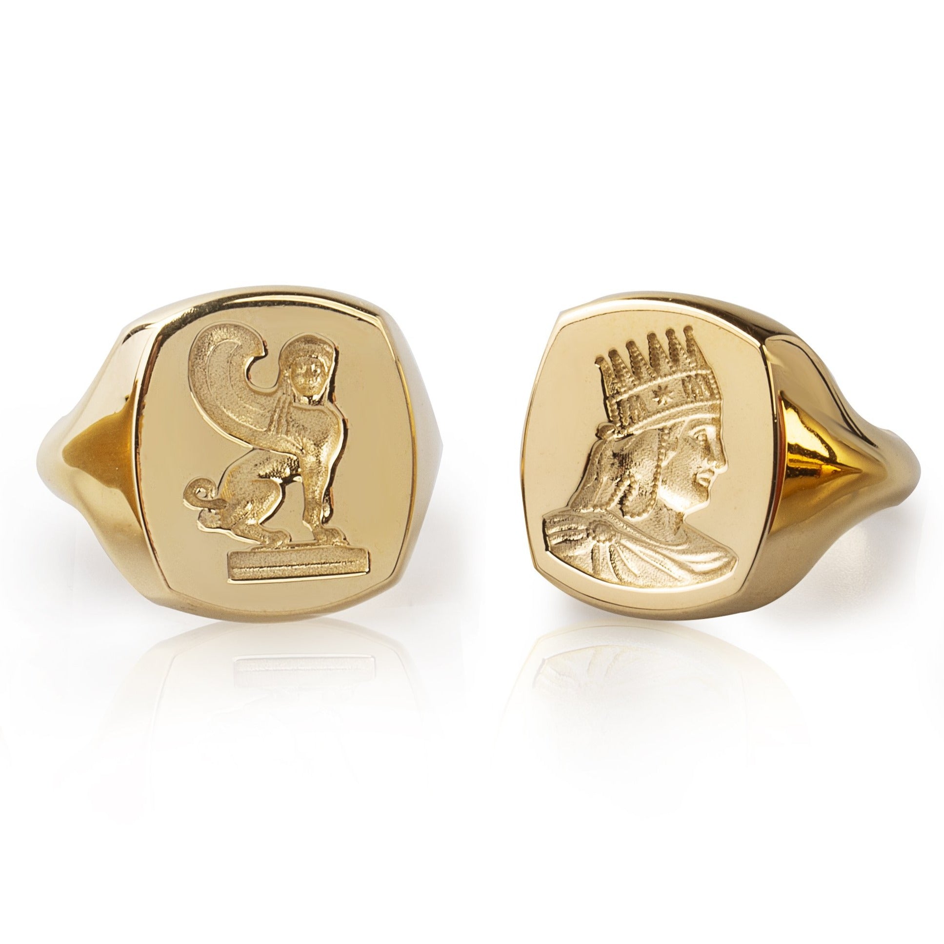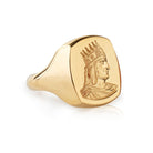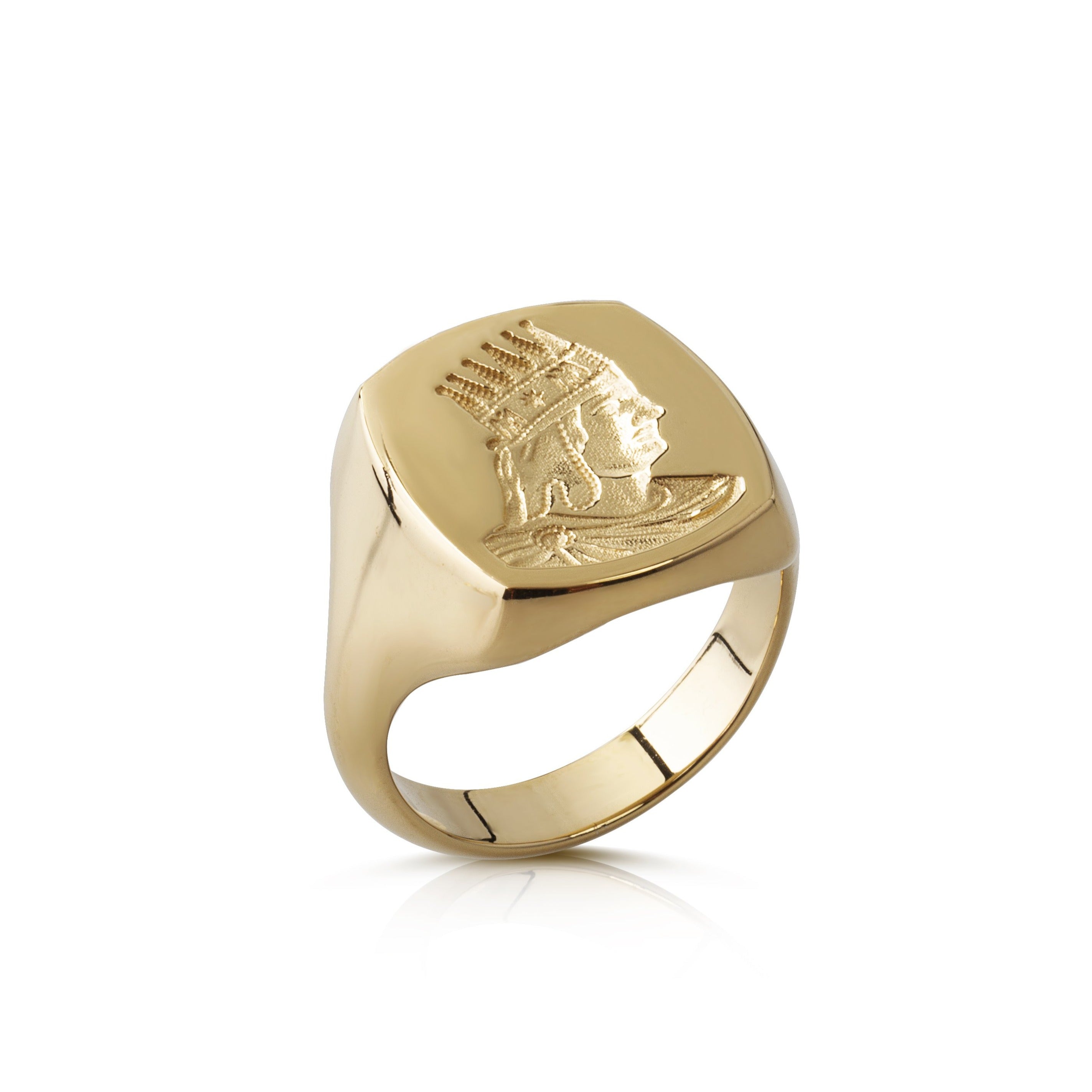 A King signet ring made out of 9K Solid Gold, 14K Solid Gold, or 18K Solid Gold. Choose a Yellow Gold, White Gold or a Rose Gold finish.