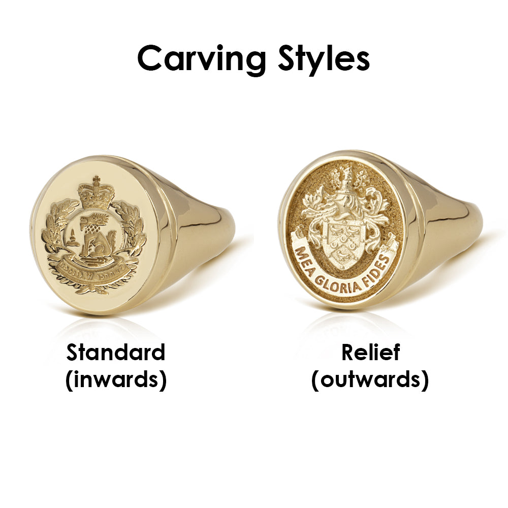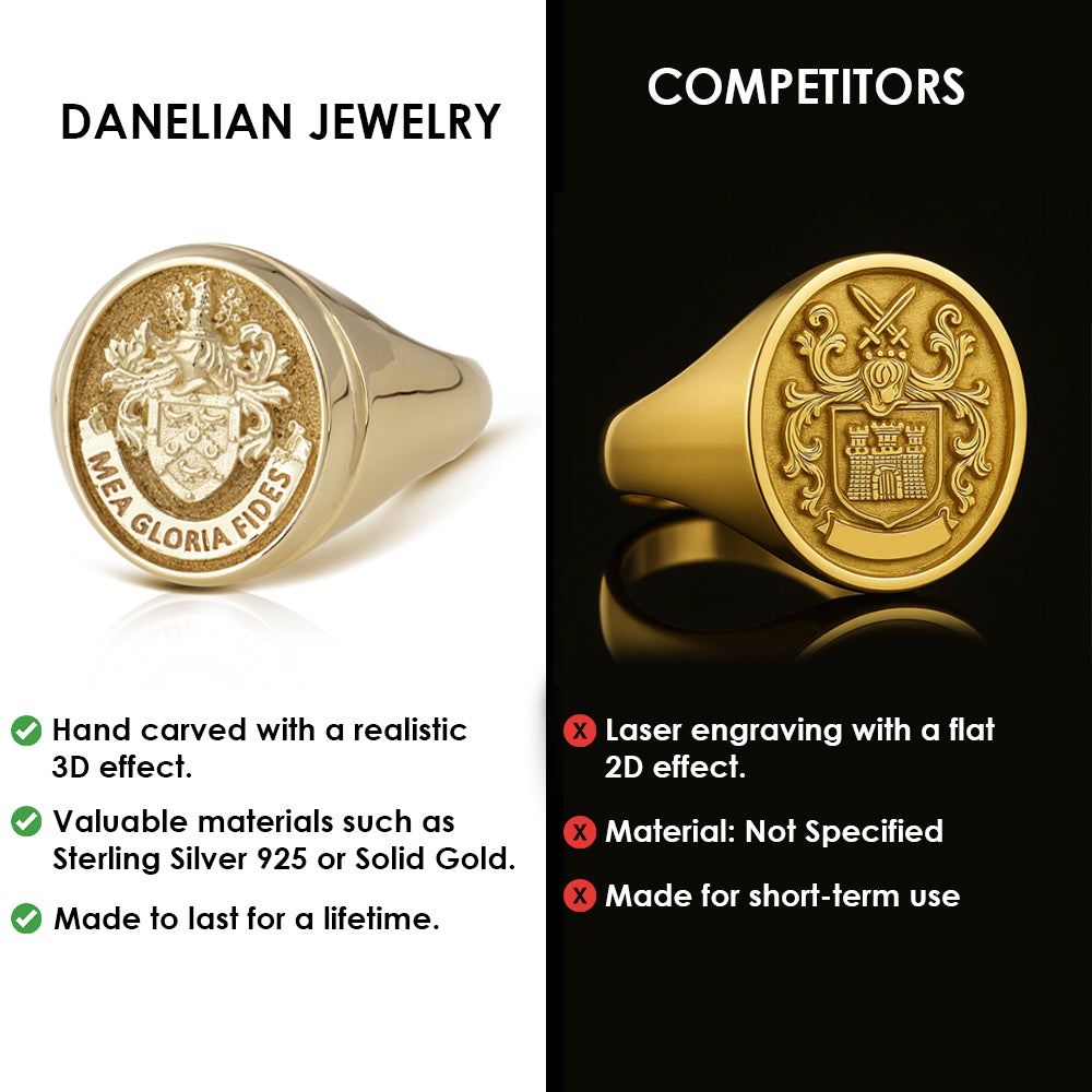 Customization: Upload your coat of arms or custom design when placing your order. We will carve it on the face of your signet ring.