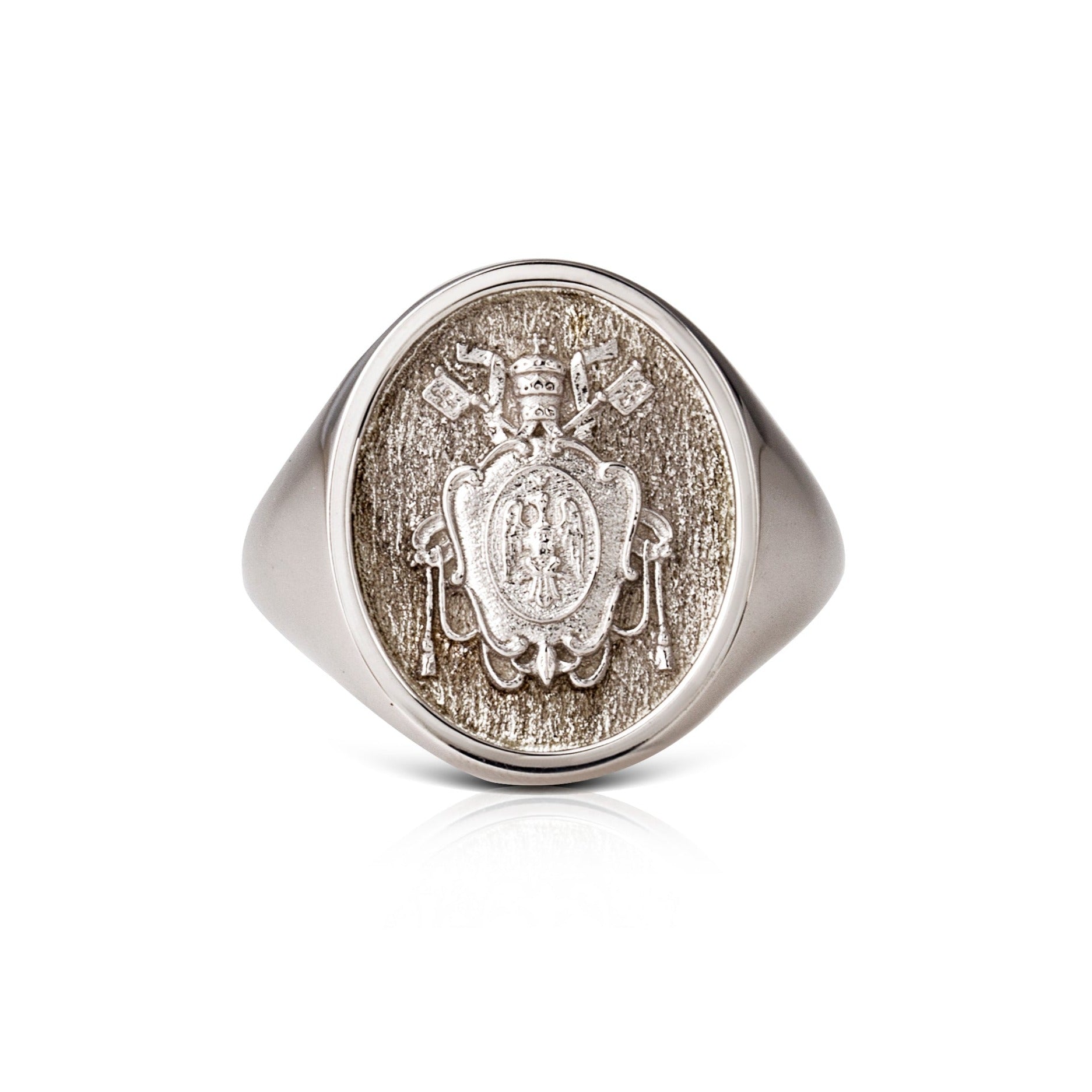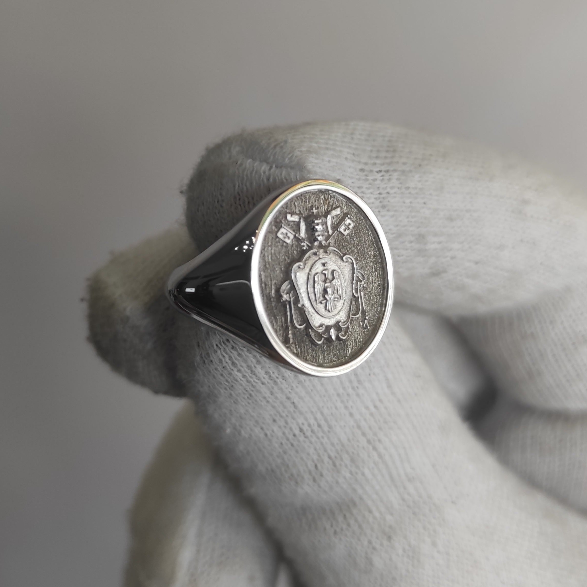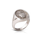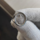 A Custom Family Crest signet ring made out of 9K Solid Gold, 14K Solid Gold, or 18K Solid Gold. Choose a Yellow Gold, White Gold, or a Rose Gold finish.
