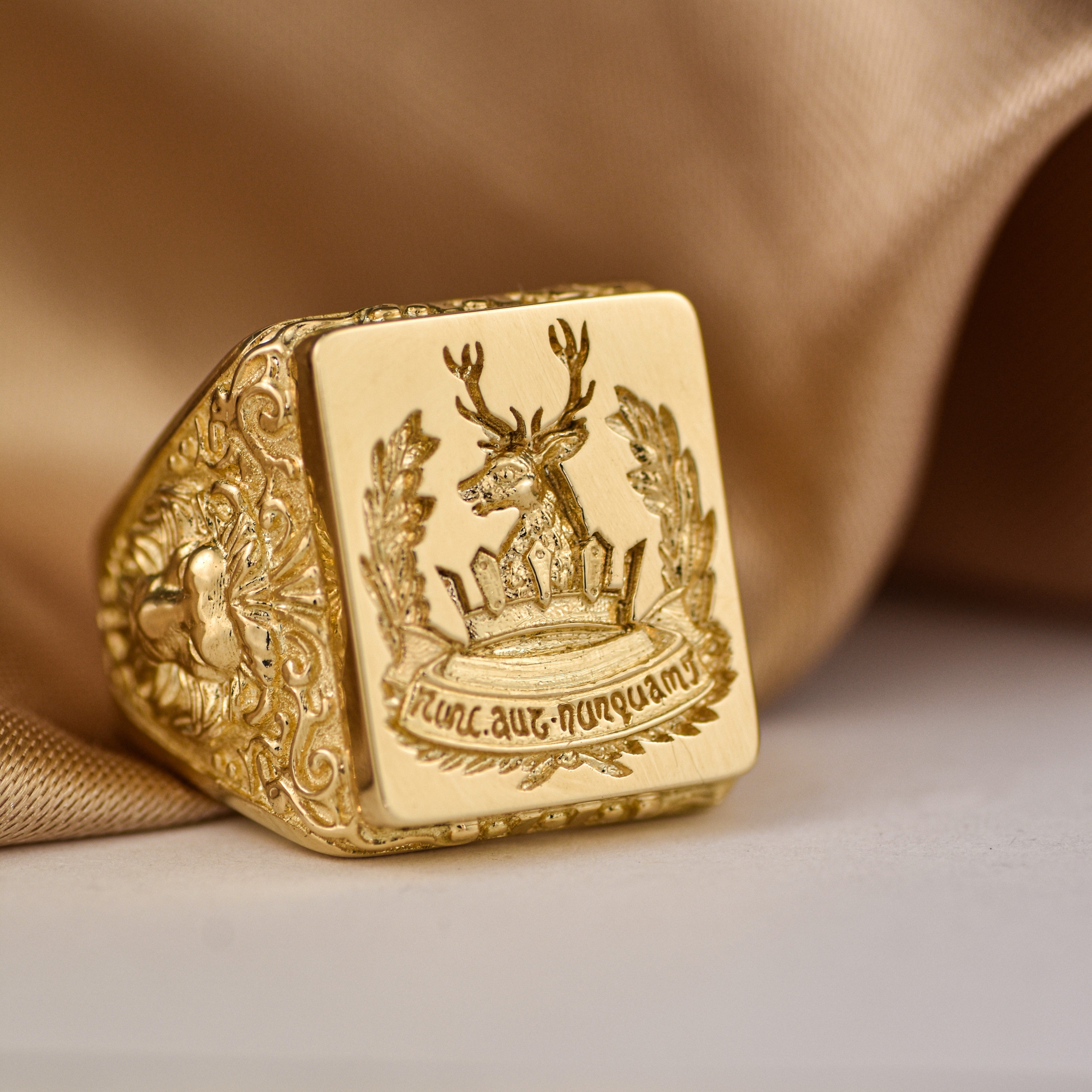 Square Coat Of Arms Signet Ring that can be personalized with your desired family crest design. A handmade piece that has been brought to life with the combination of fine goldsmith techniques and the latest technology.