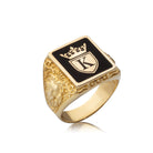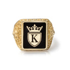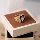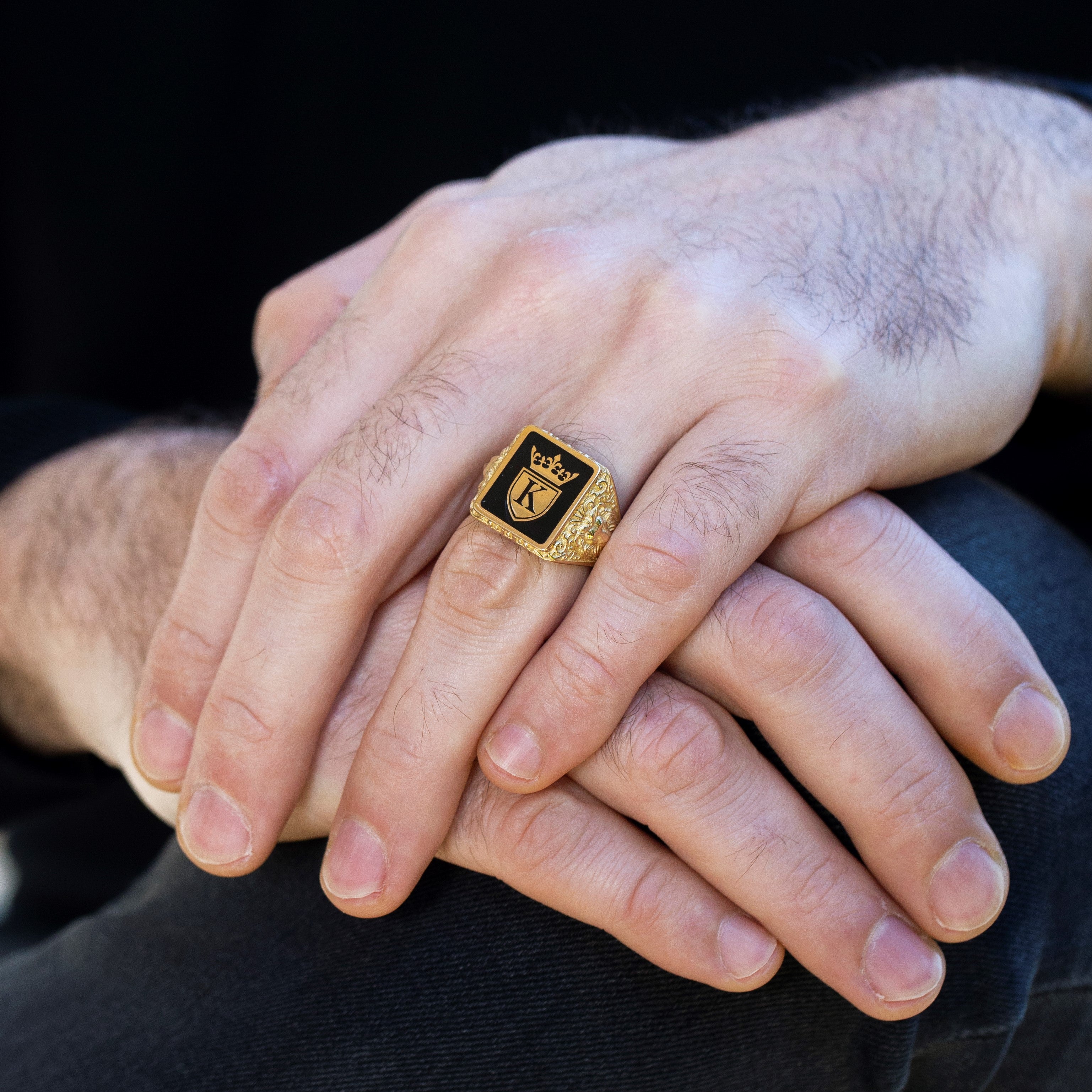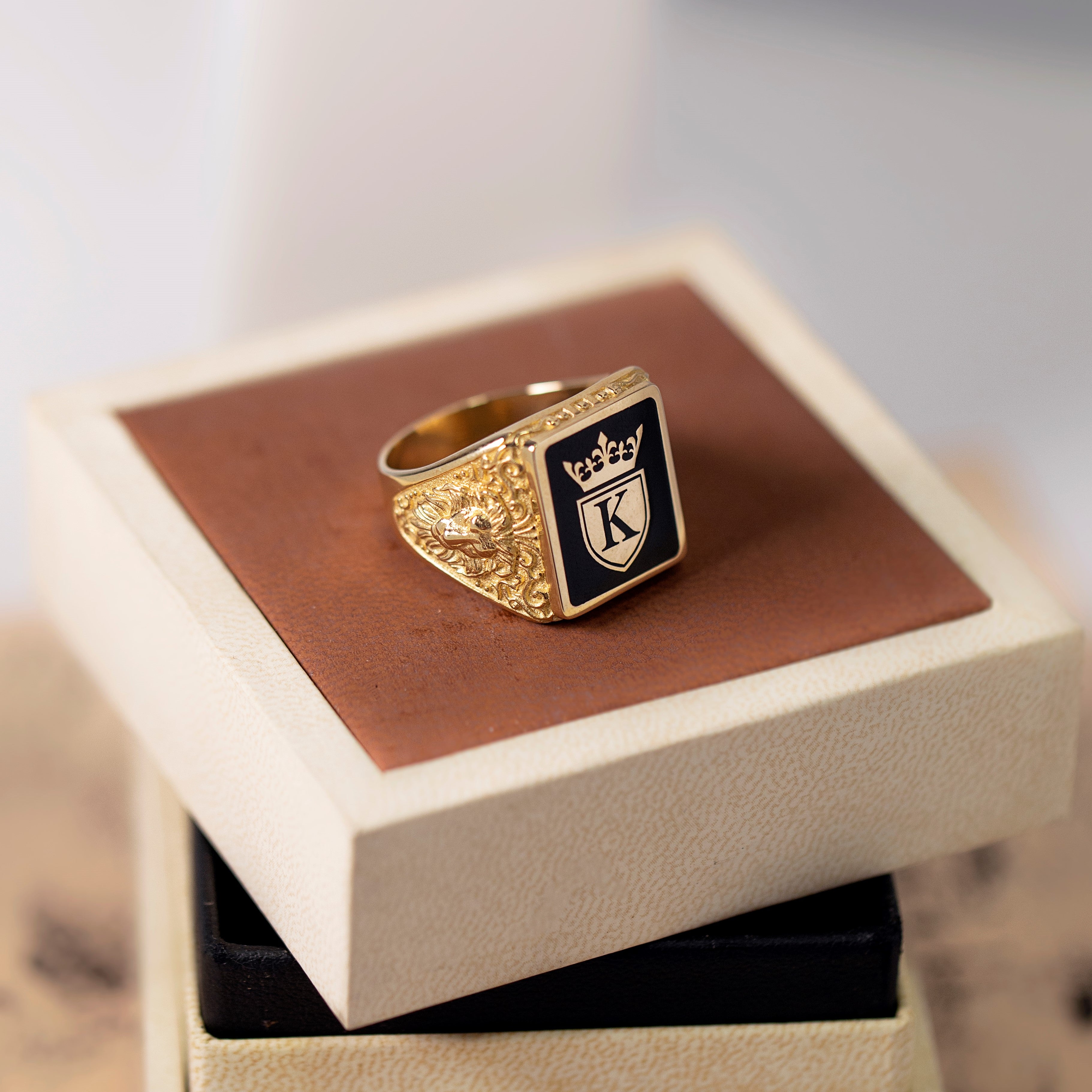 Square Black Enamel Letter Signet Ring that can be personalized with your desired letter. A handmade piece that has been brought to life with the combination of fine goldsmith techniques and the latest technology.