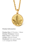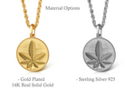Our collection of round pendants with unique designs on top are made for both men and women. Our Cannabis Leaf necklace can be personalized on the back with a custom message of your choice.