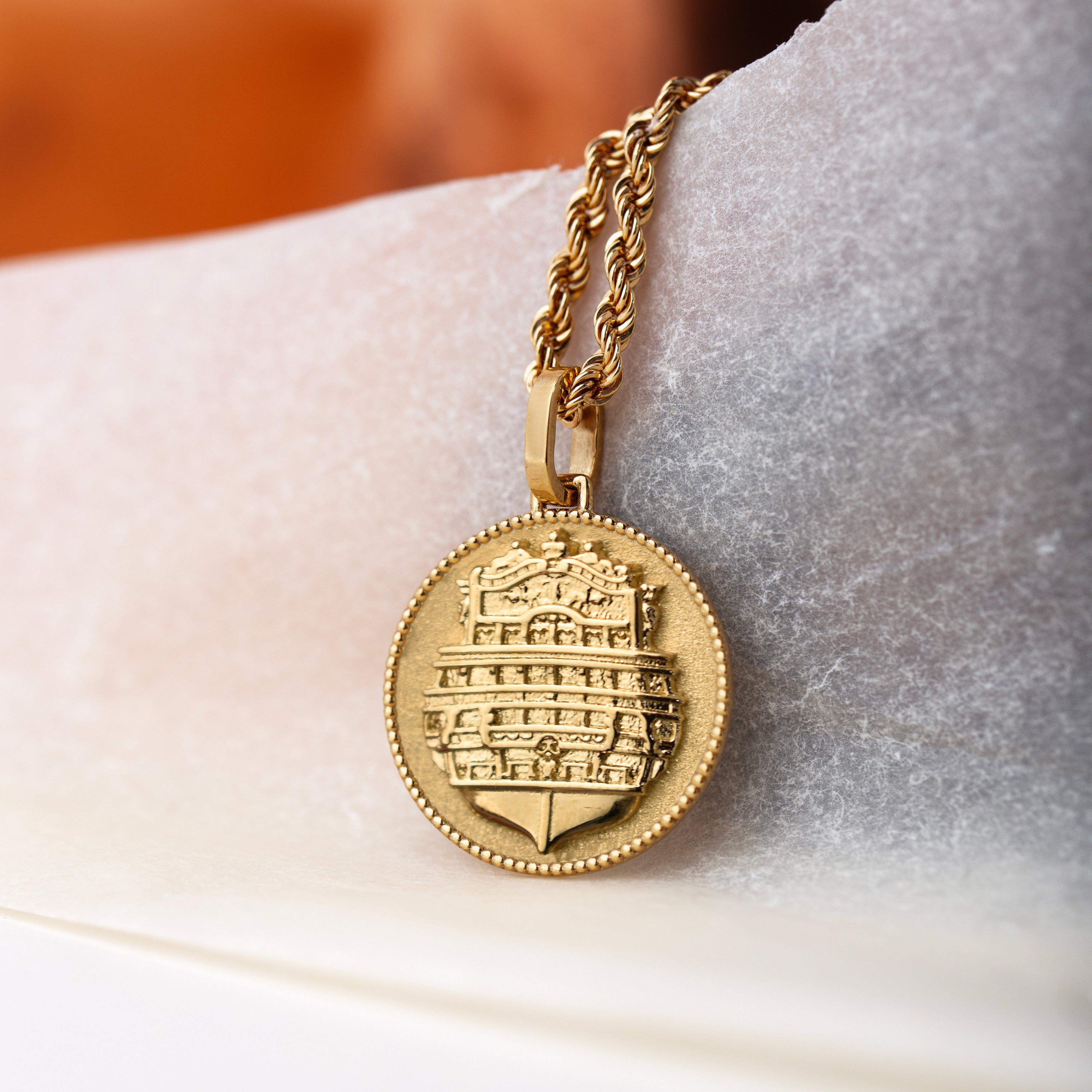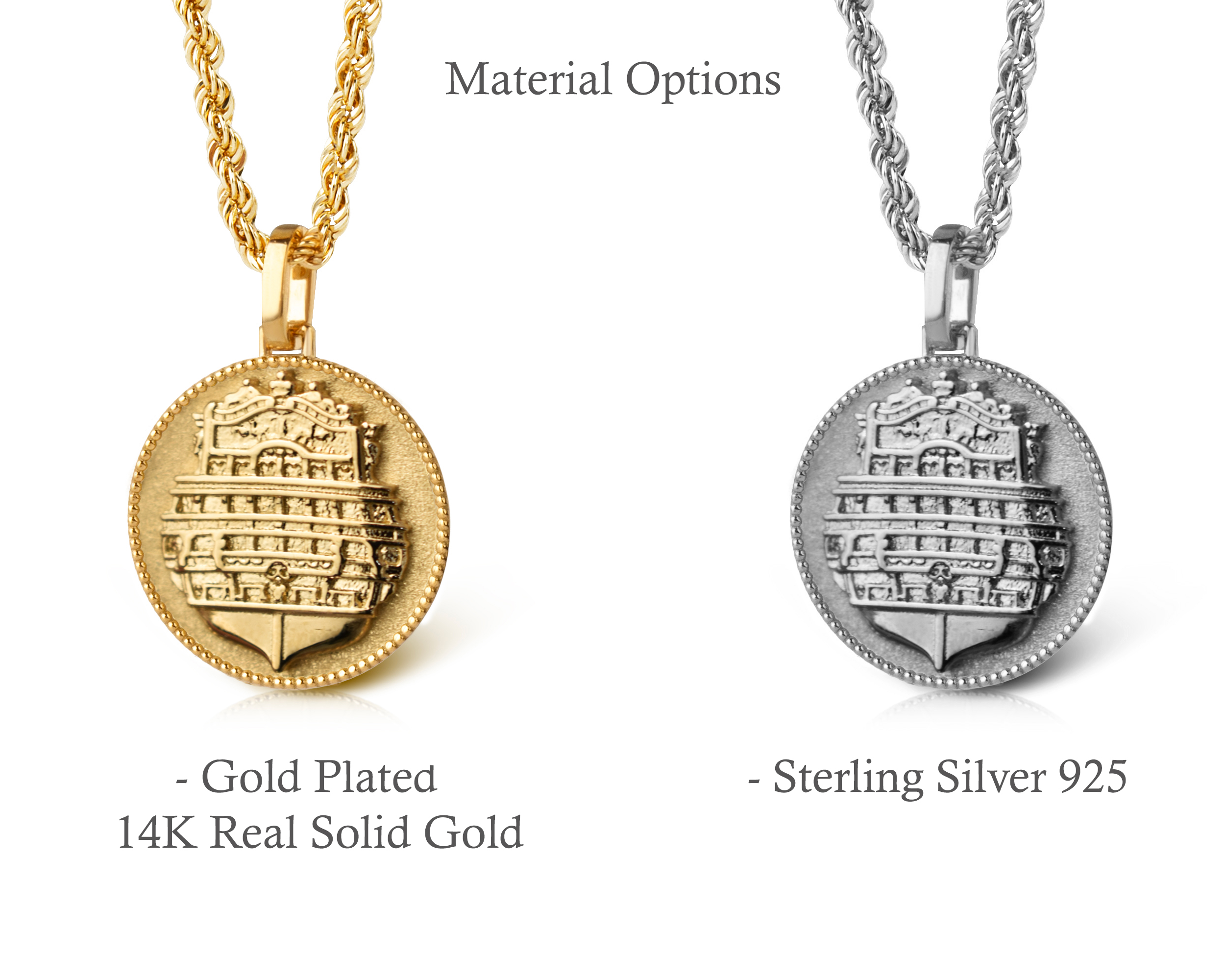 Our collection of round pendants with unique designs on top are made for both men and women. Our Noah's Ark necklace can be personalized on the back with a custom message of your choice.