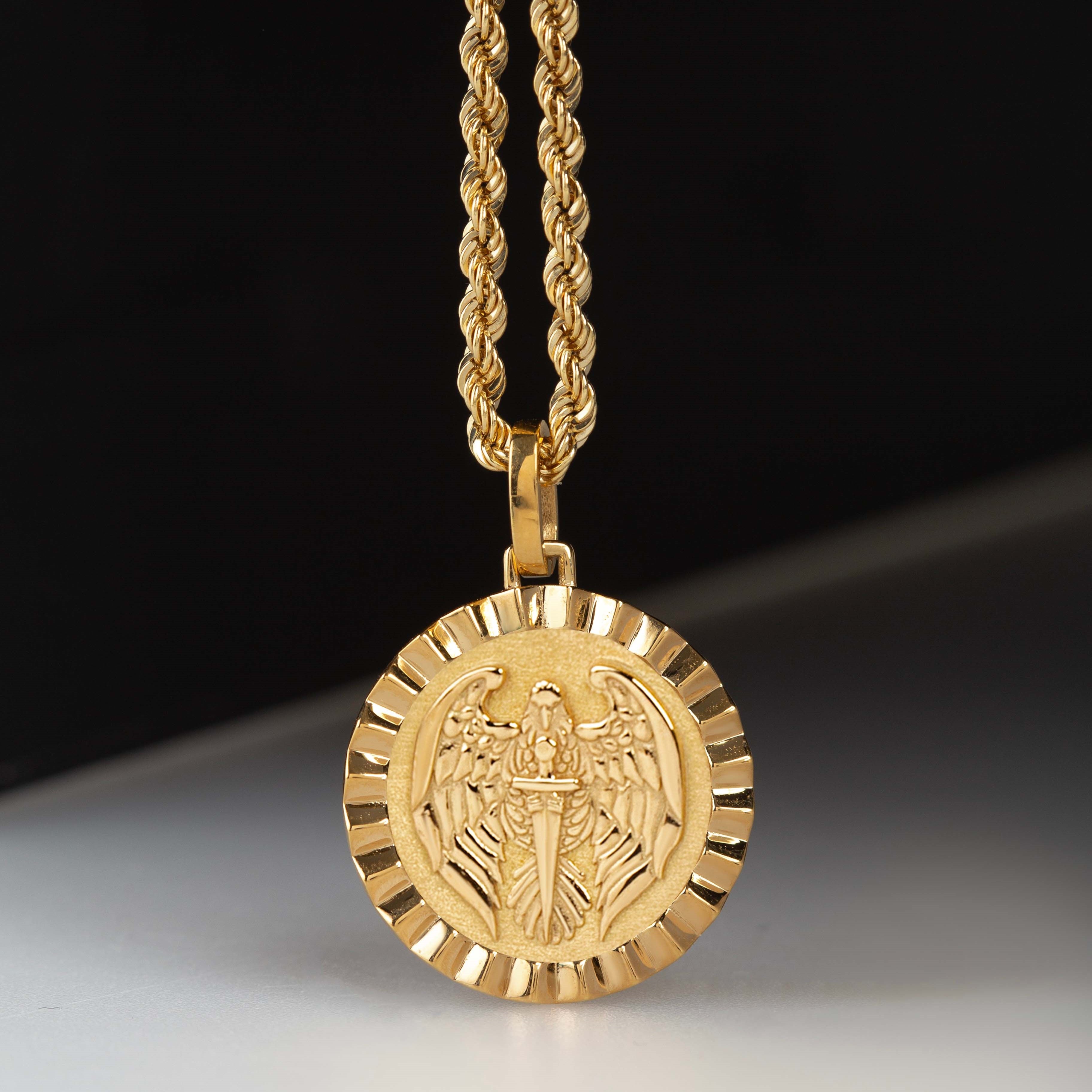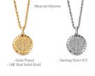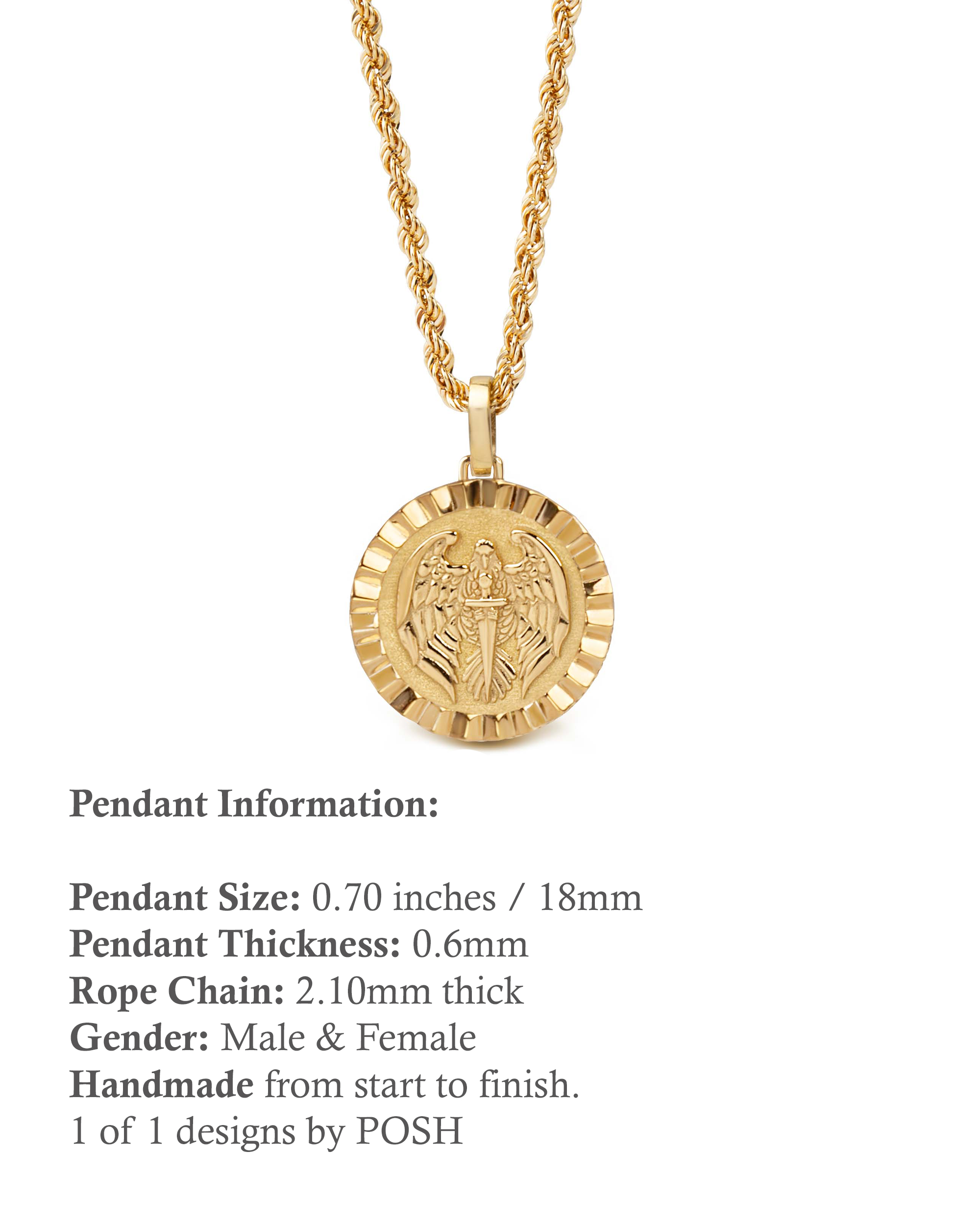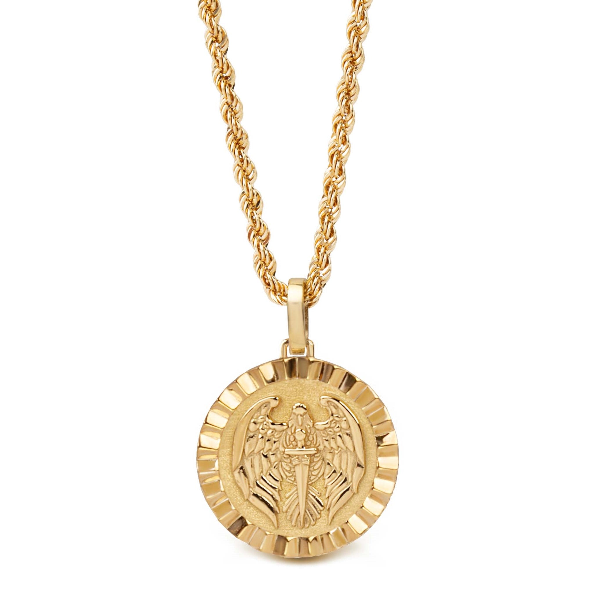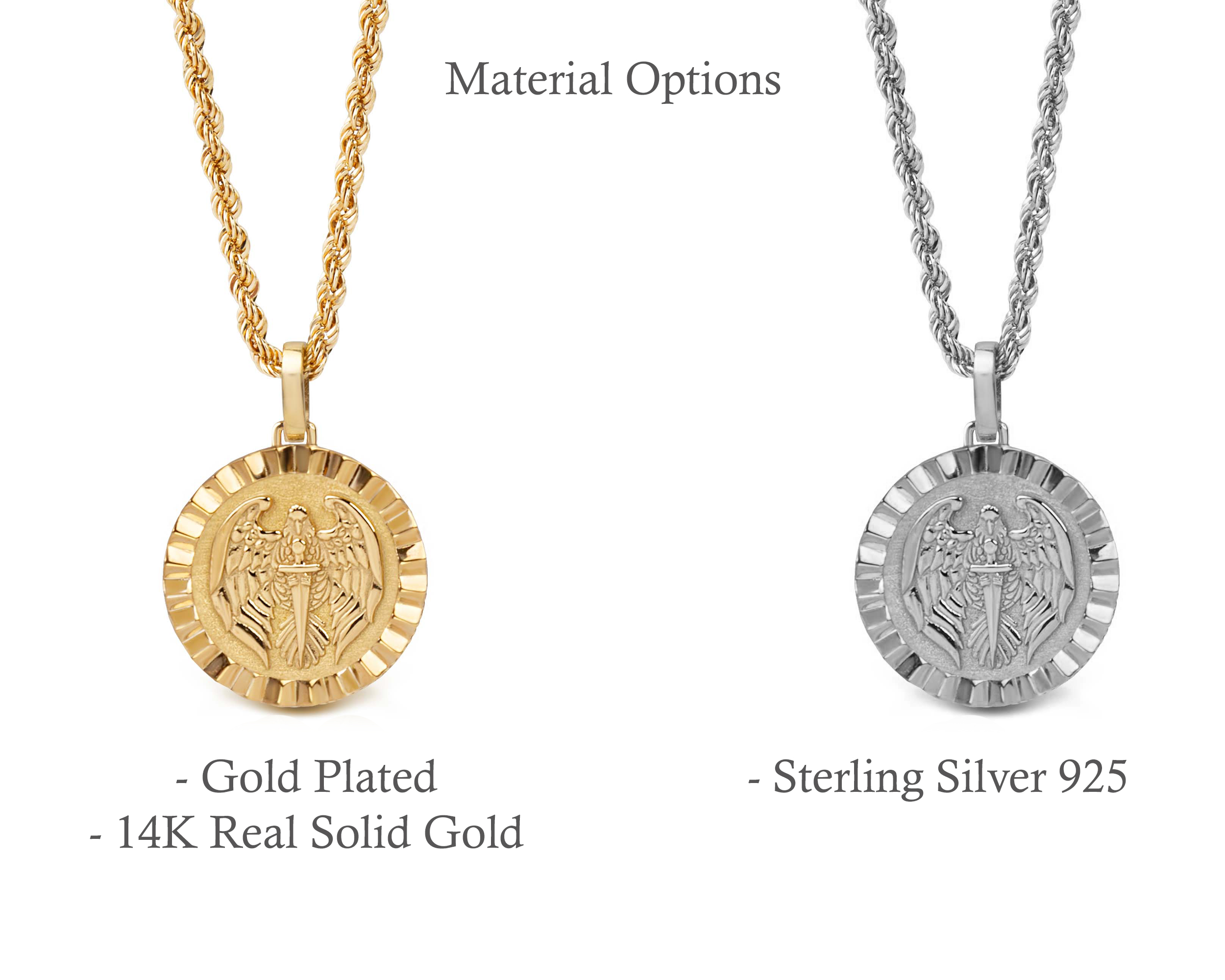 Our collection of round pendants with unique designs on top are made for both men and women. Our Eagle Sword necklace can be personalized on the back with a custom message of your choice.