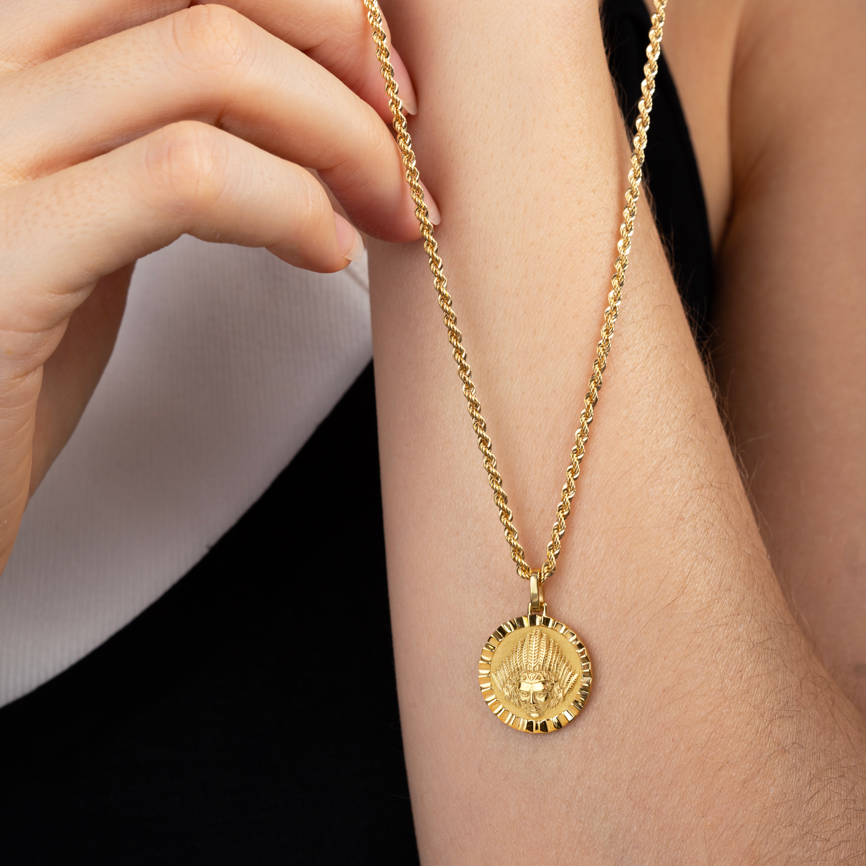 Our collection of round pendants with unique designs on top are made for both men and women. Our Indian Chief necklace can be personalized on the back with a custom message of your choice.