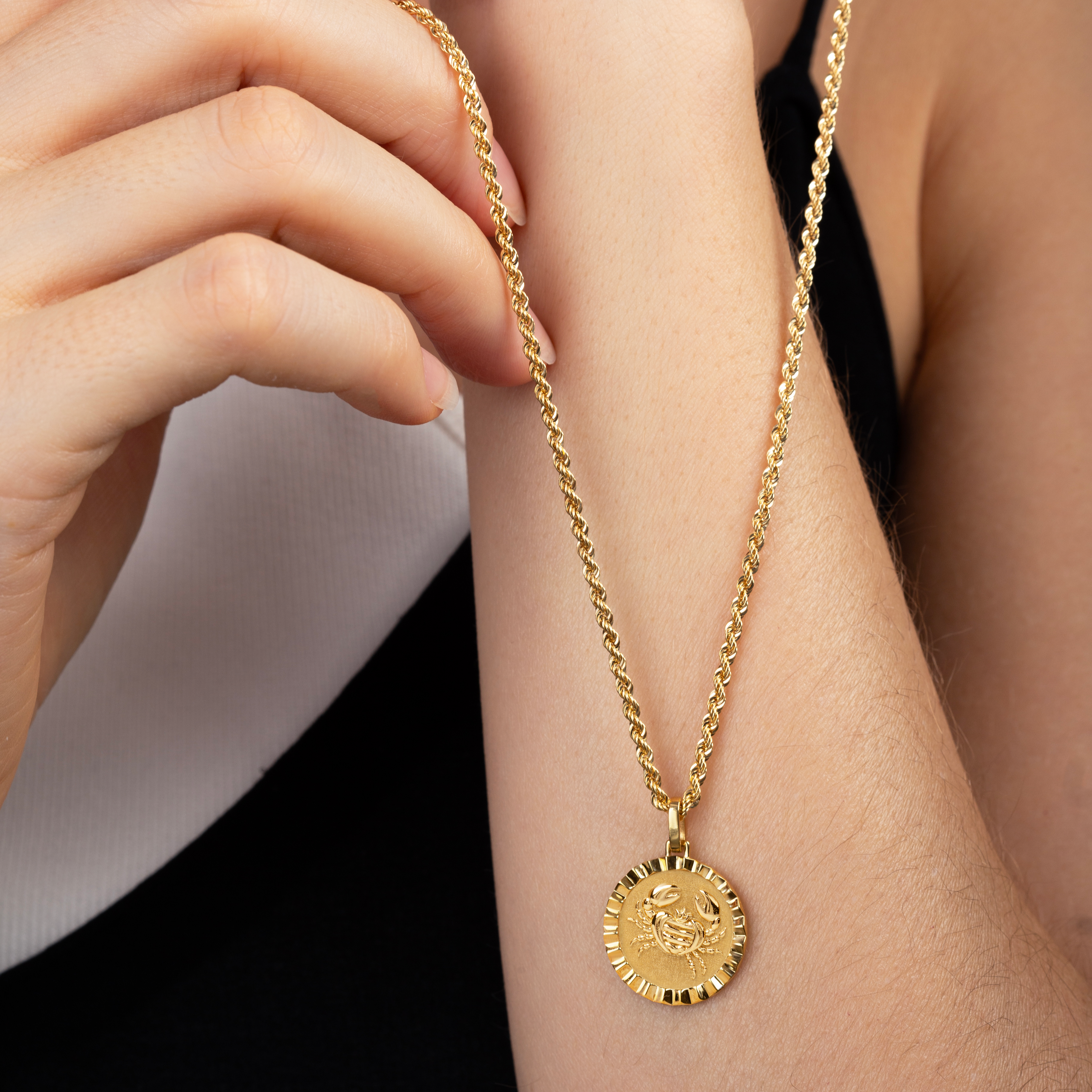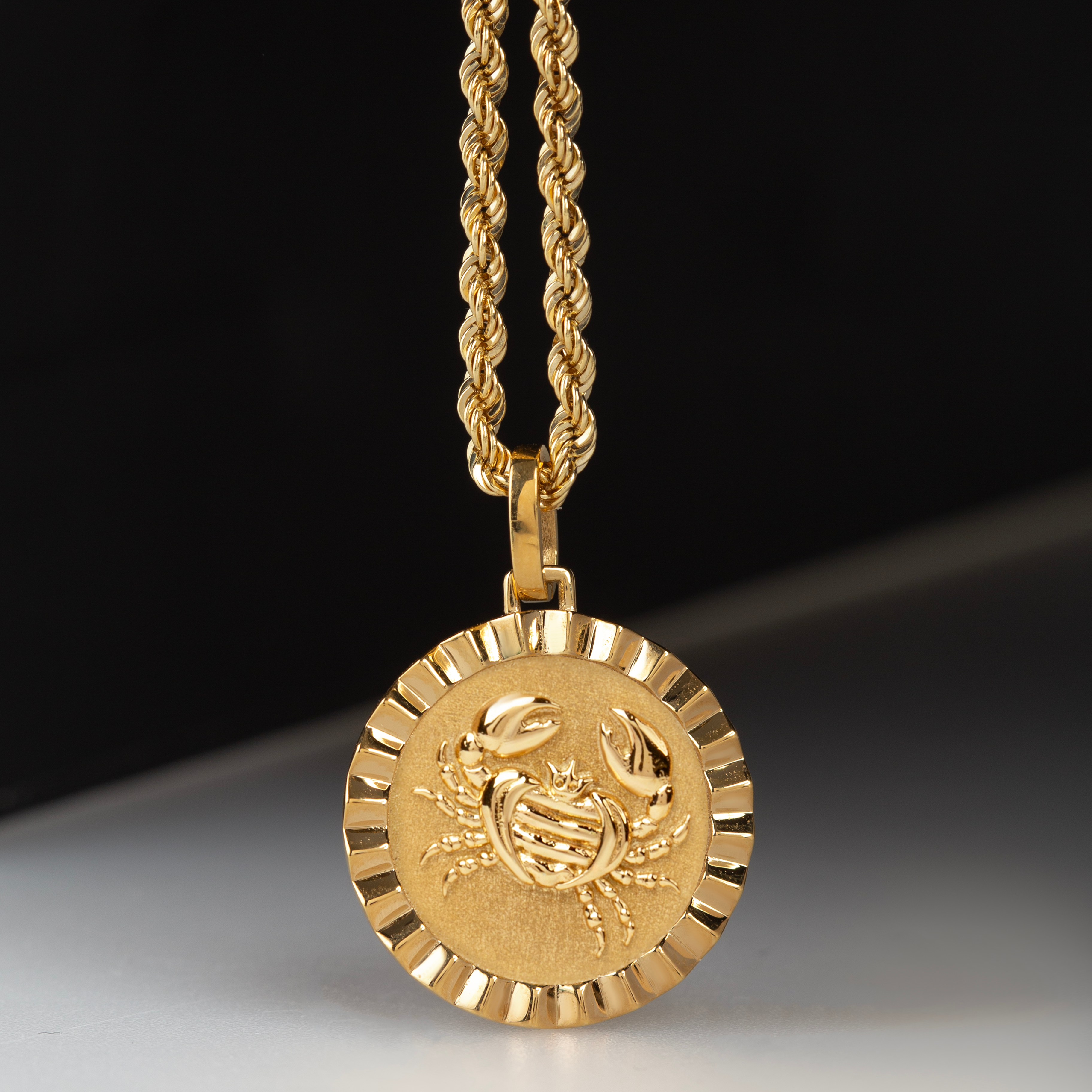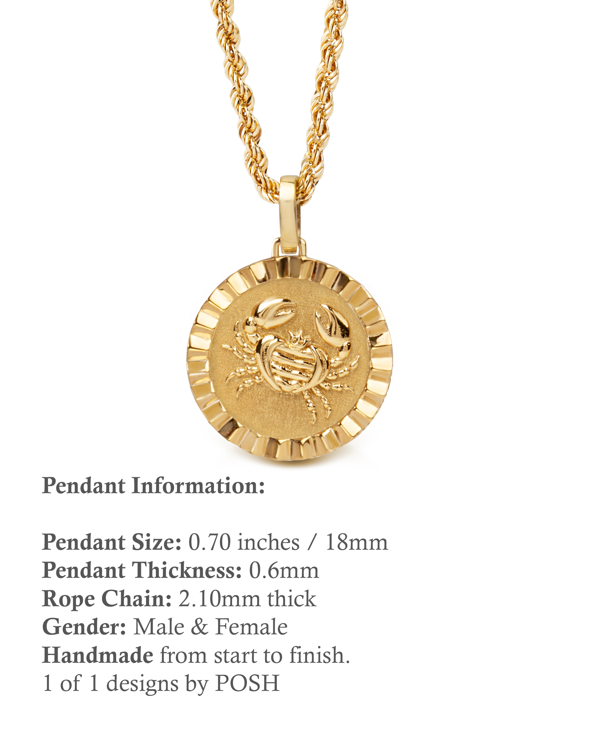 Our collection of round pendants with unique designs on top are made for both men and women. Our Cancer necklace can be personalized on the back with a custom message of your choice.