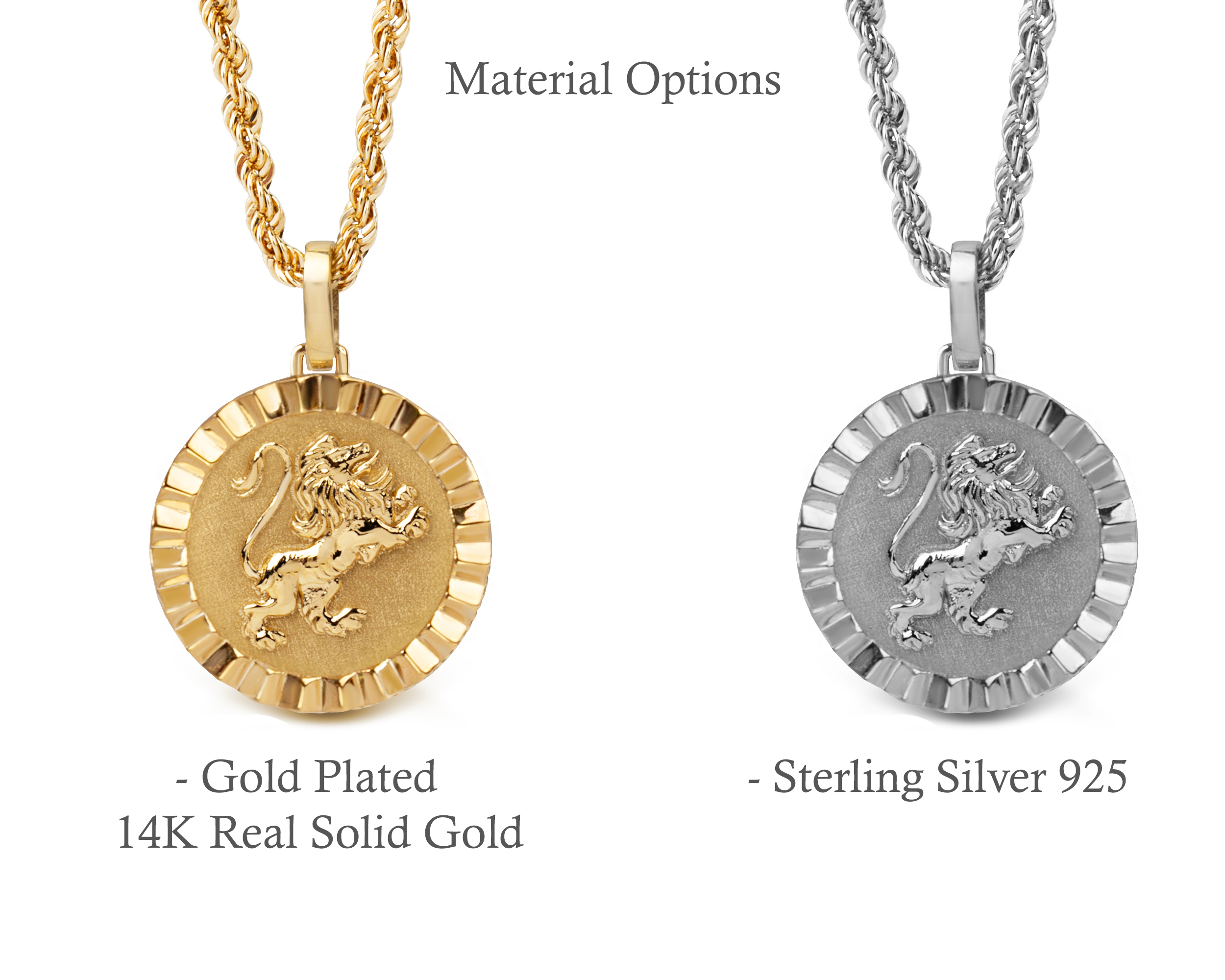 Our collection of round pendants with unique designs on top are made for both men and women. Our Leo necklace can be personalized on the back with a custom message of your choice.