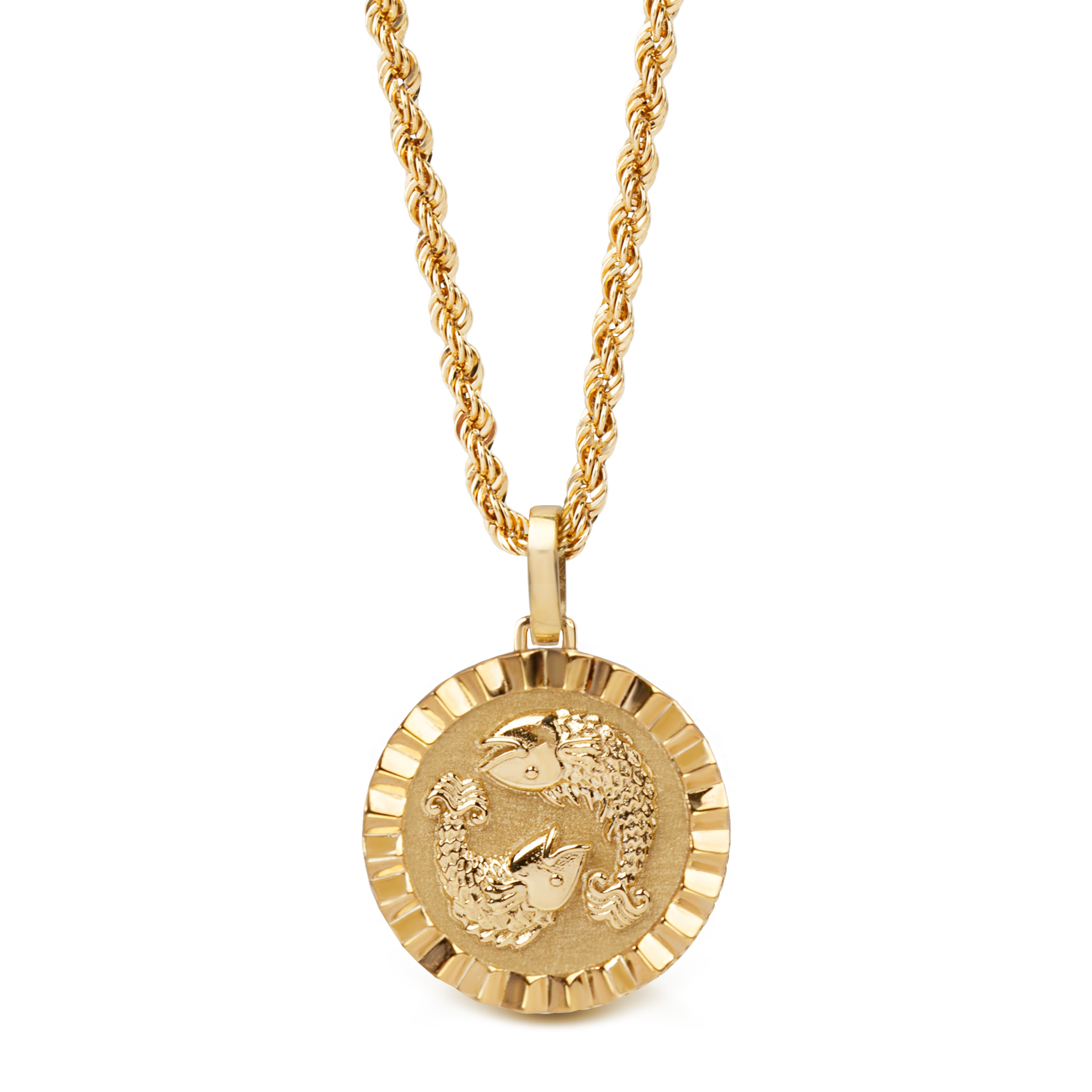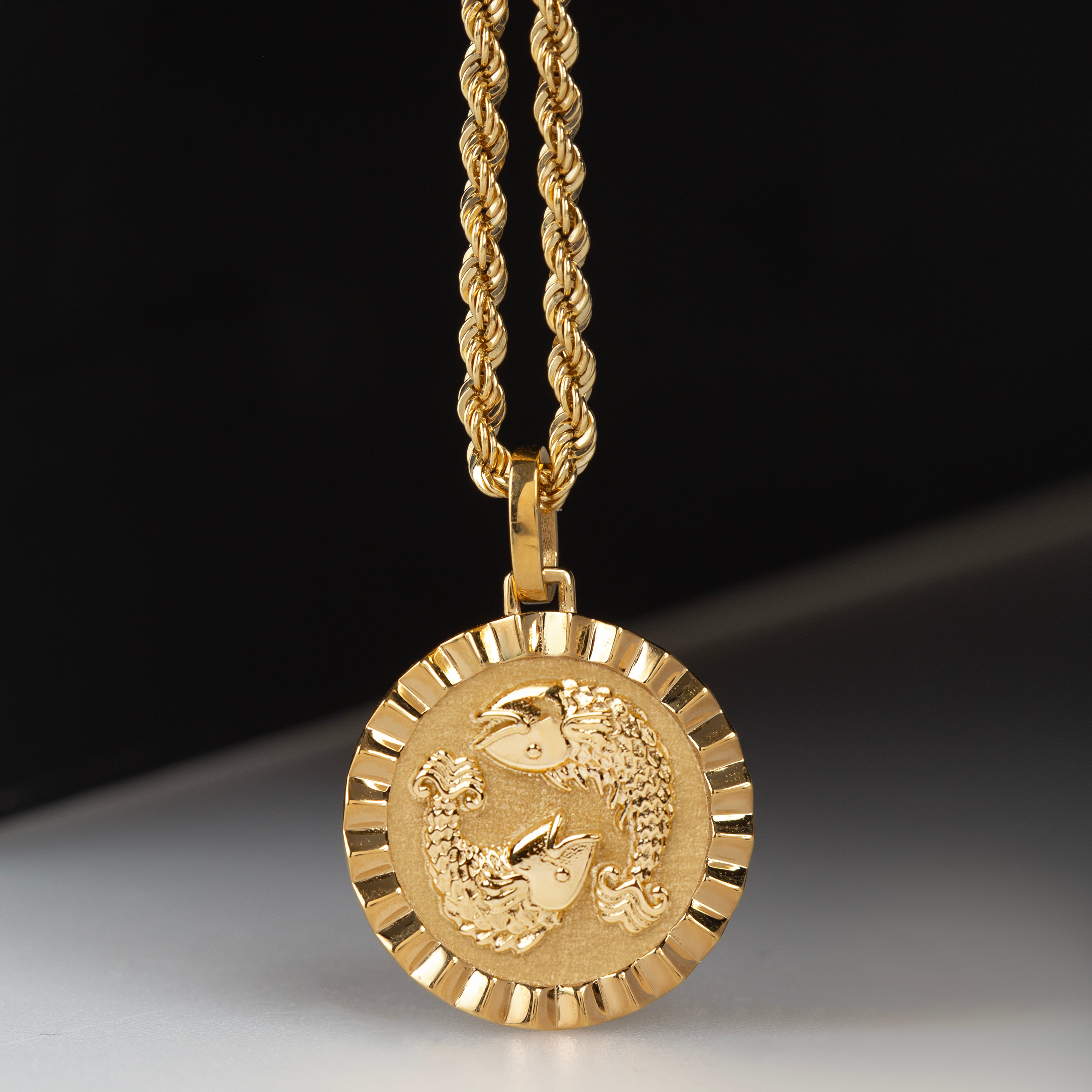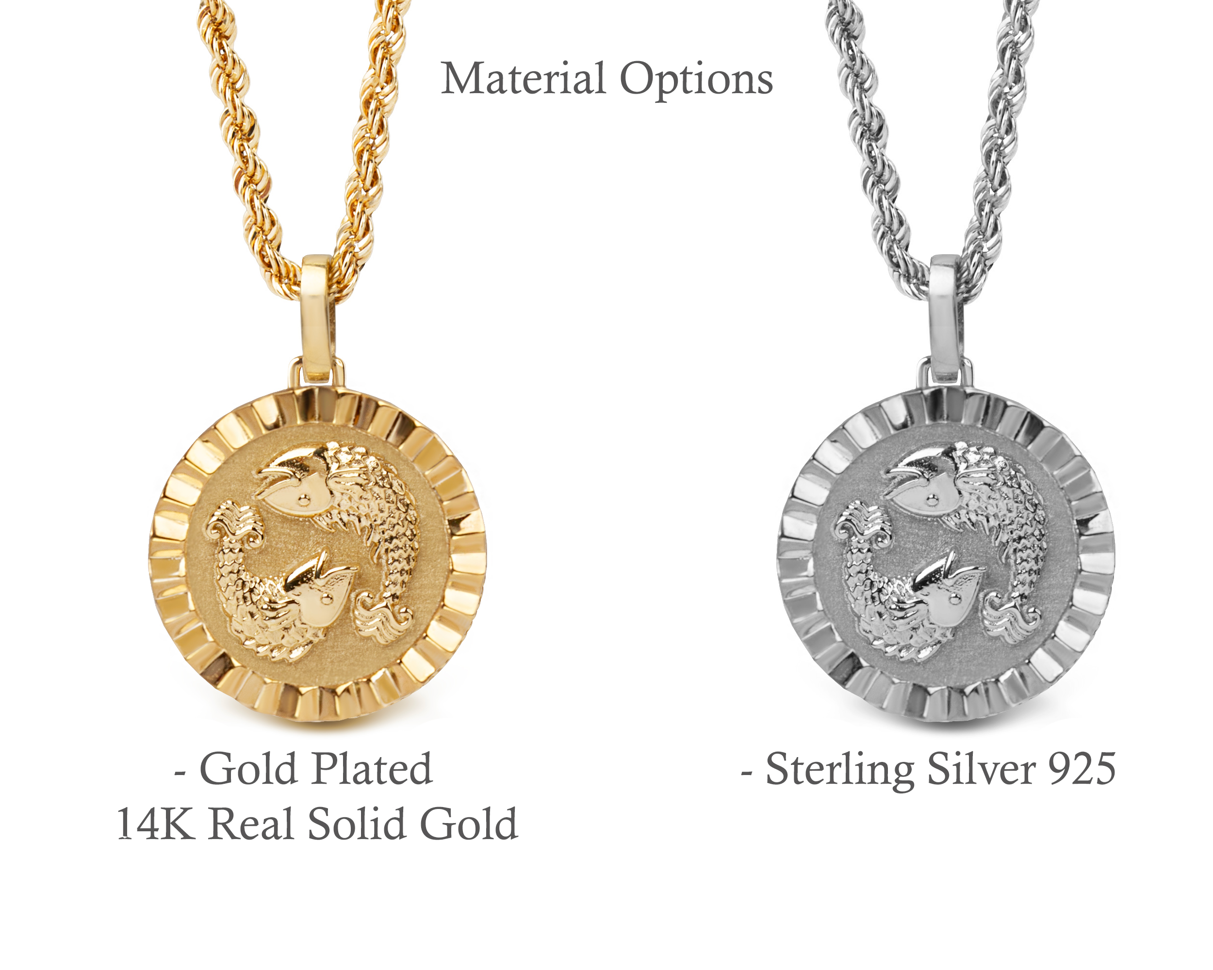 Our collection of round pendants with unique designs on top are made for both men and women. Our Pisces necklace can be personalized on the back with a custom message of your choice.