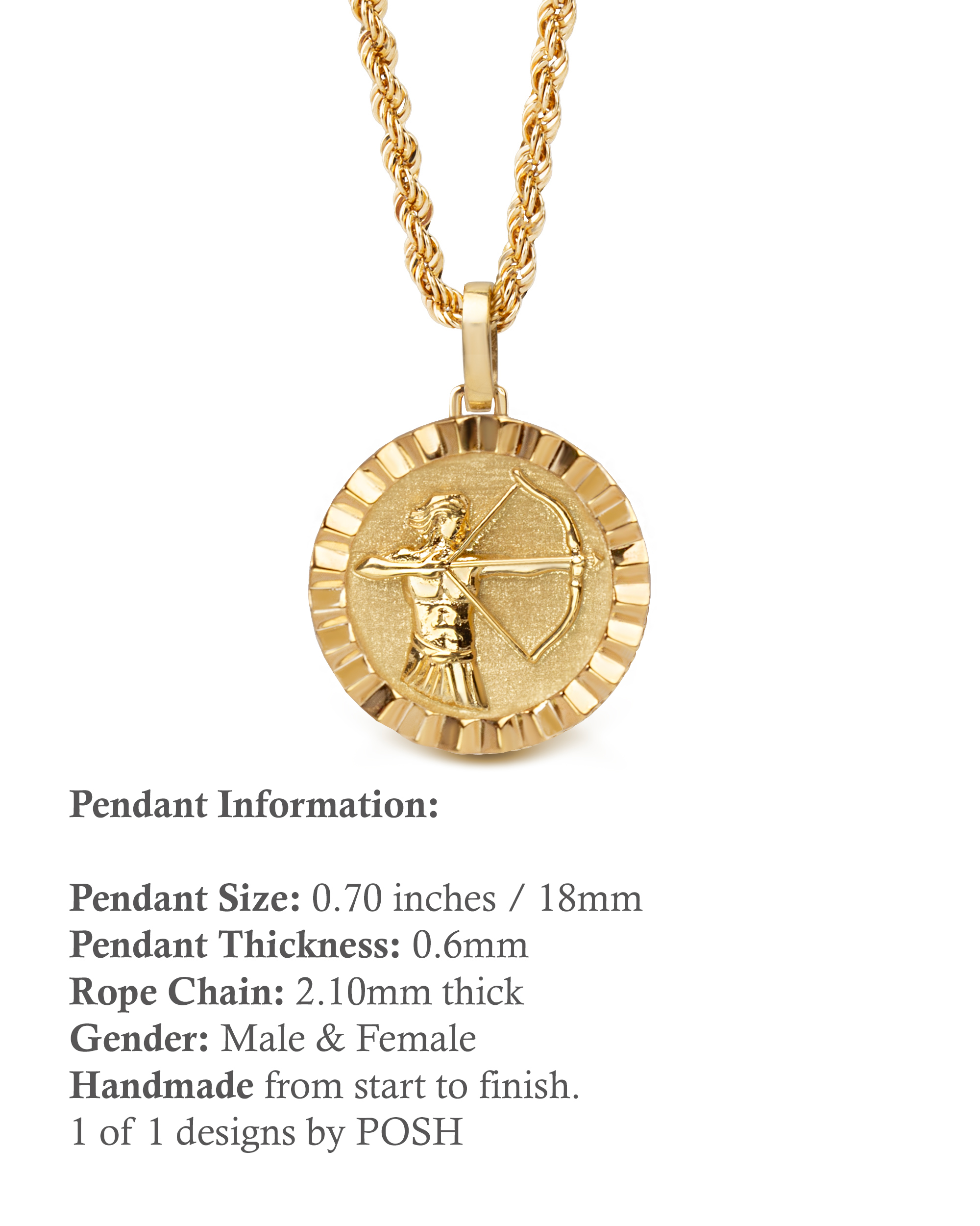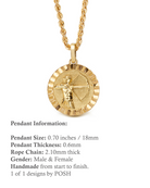 Our collection of round pendants with unique designs on top are made for both men and women. Our Sagittarius necklace can be personalized on the back with a custom message of your choice.