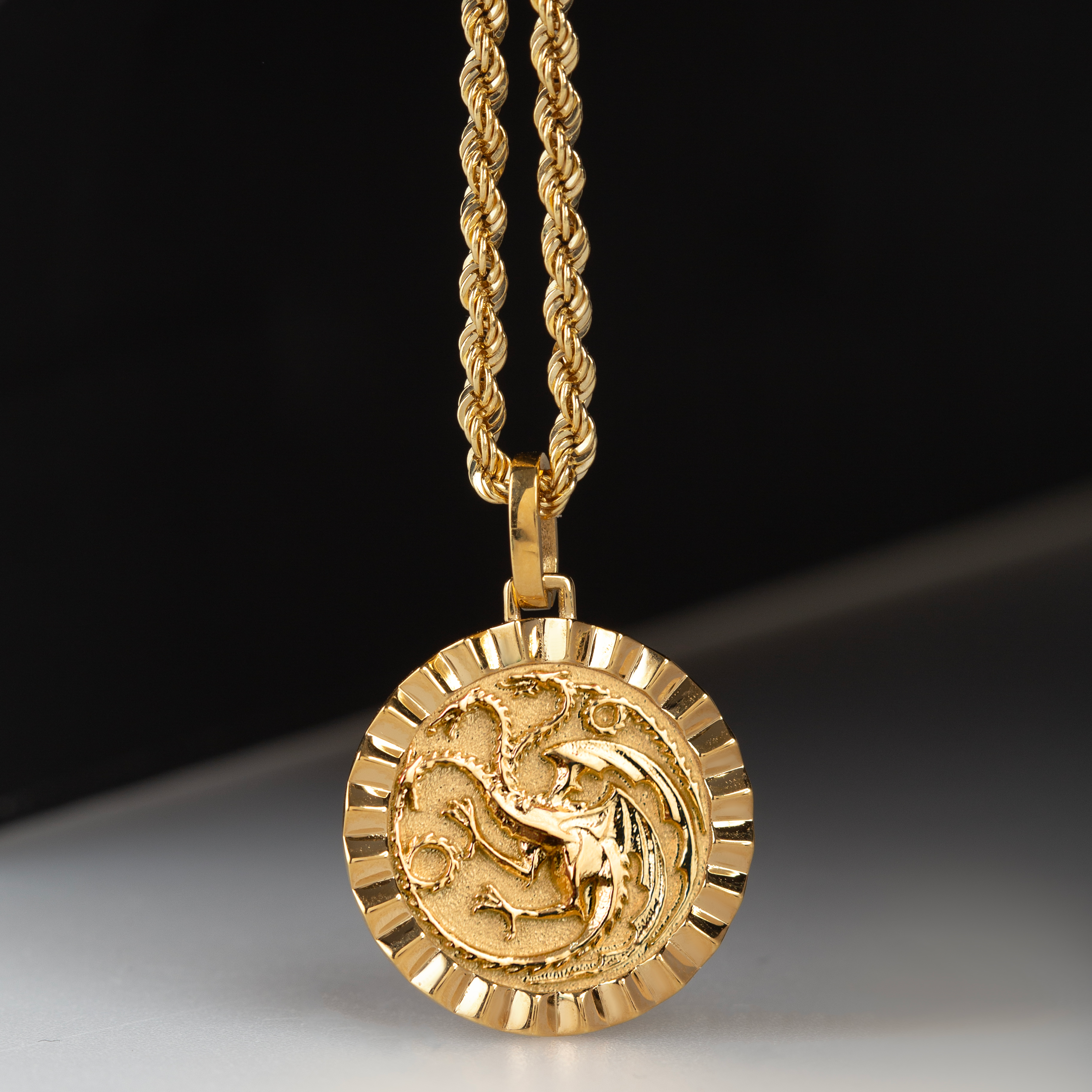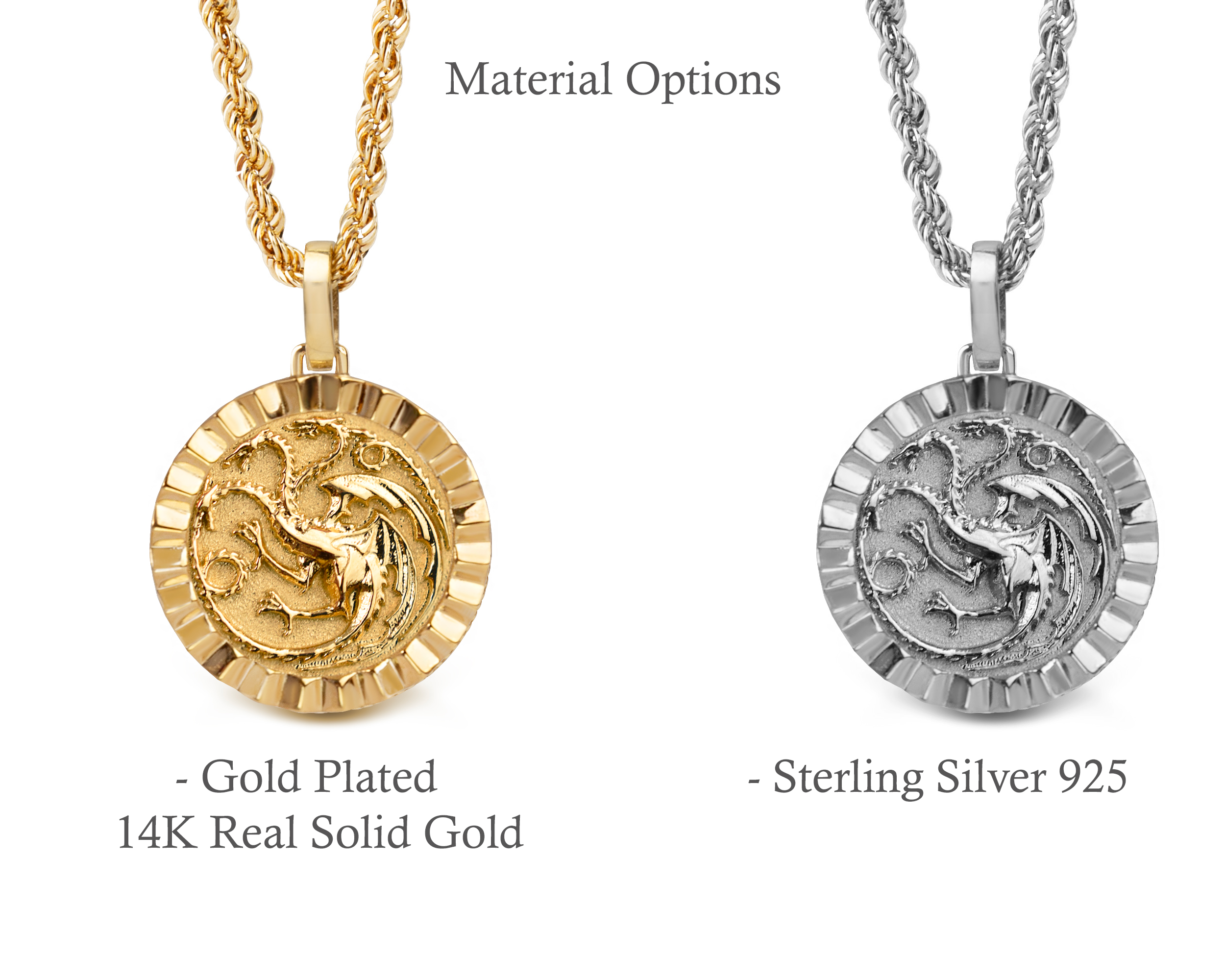 Our collection of round pendants with unique designs on top are made for both men and women. Our Mythical Dragon necklace can be personalized on the back with a custom message of your choice.