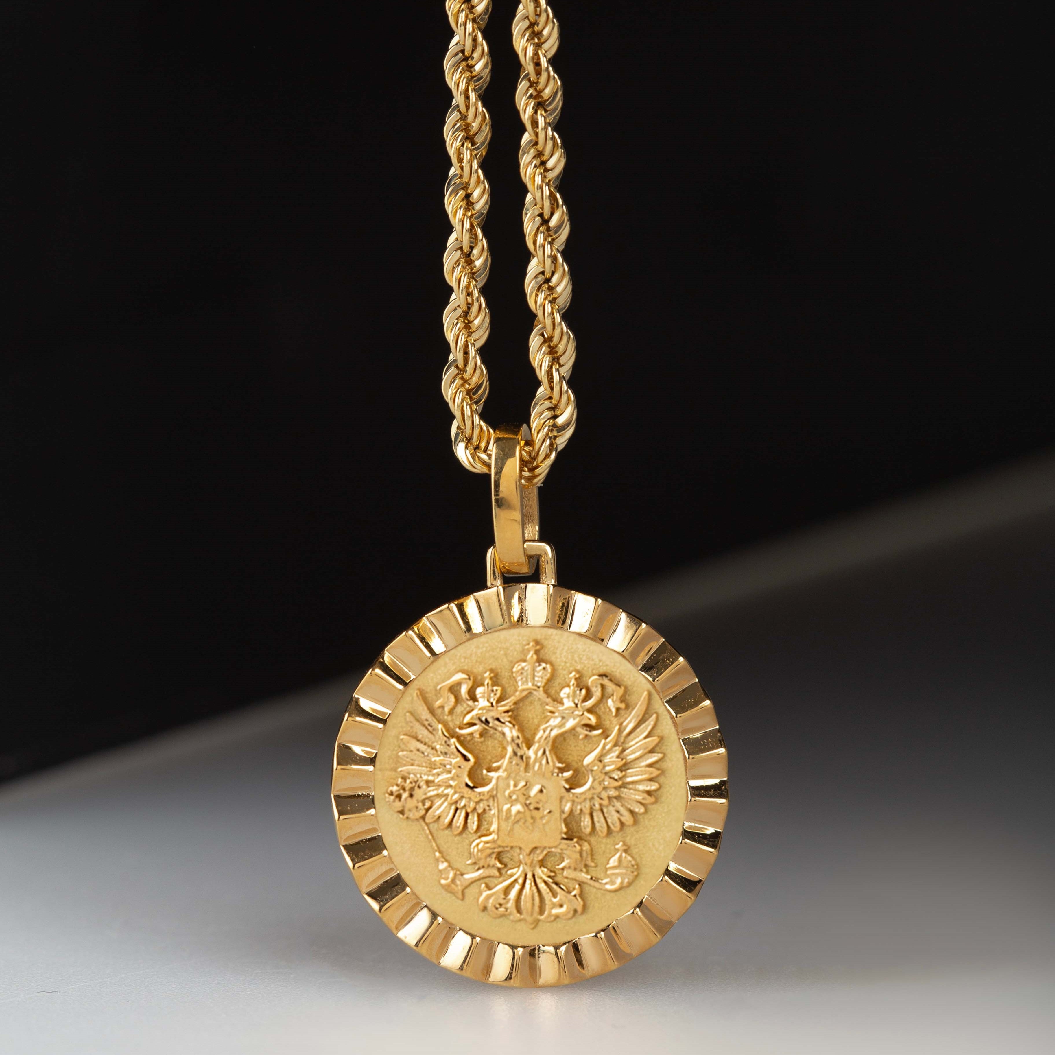 Our collection of round pendants with unique designs on top are made for both men and women. Our Double Headed Eagle necklace can be personalized on the back with a custom message of your choice.