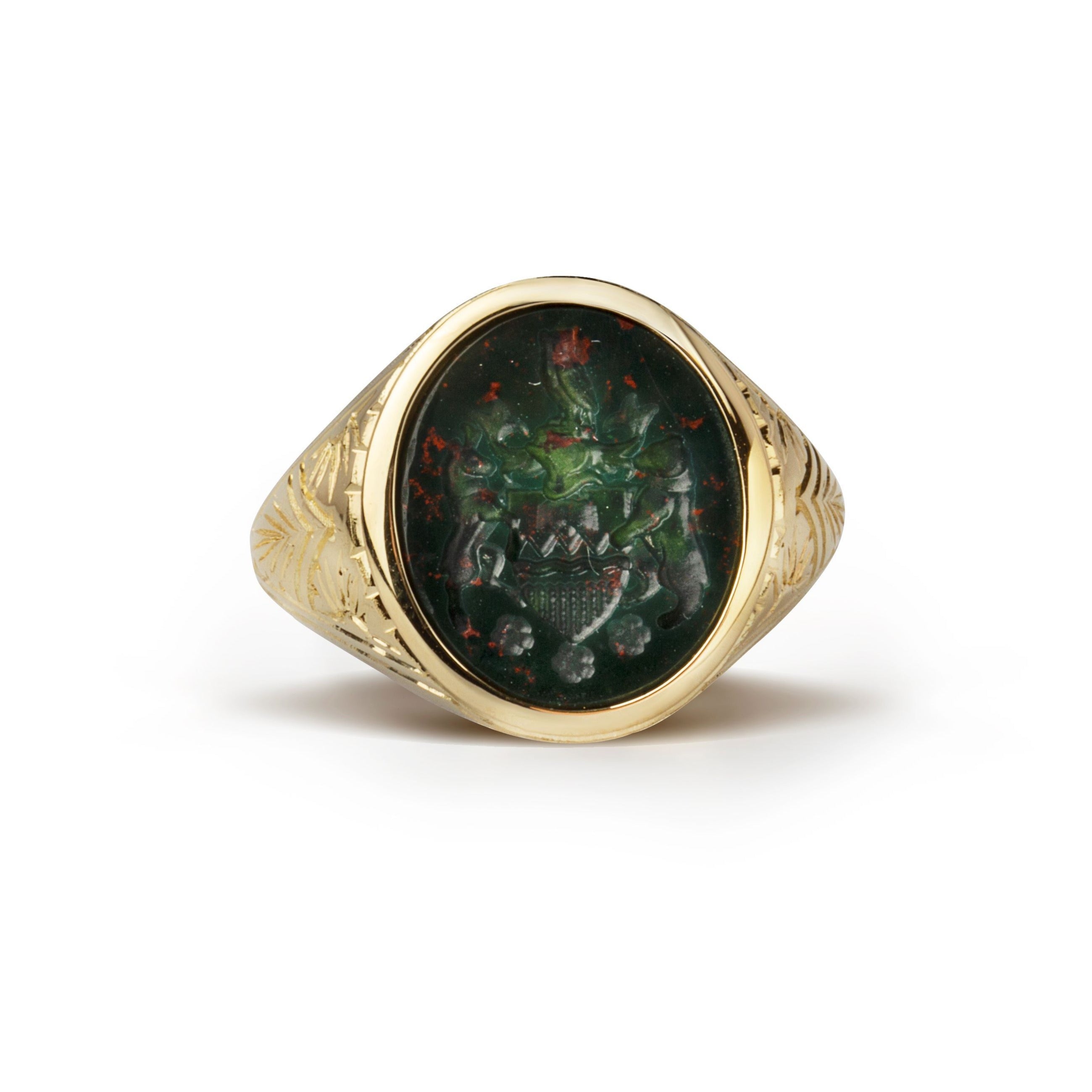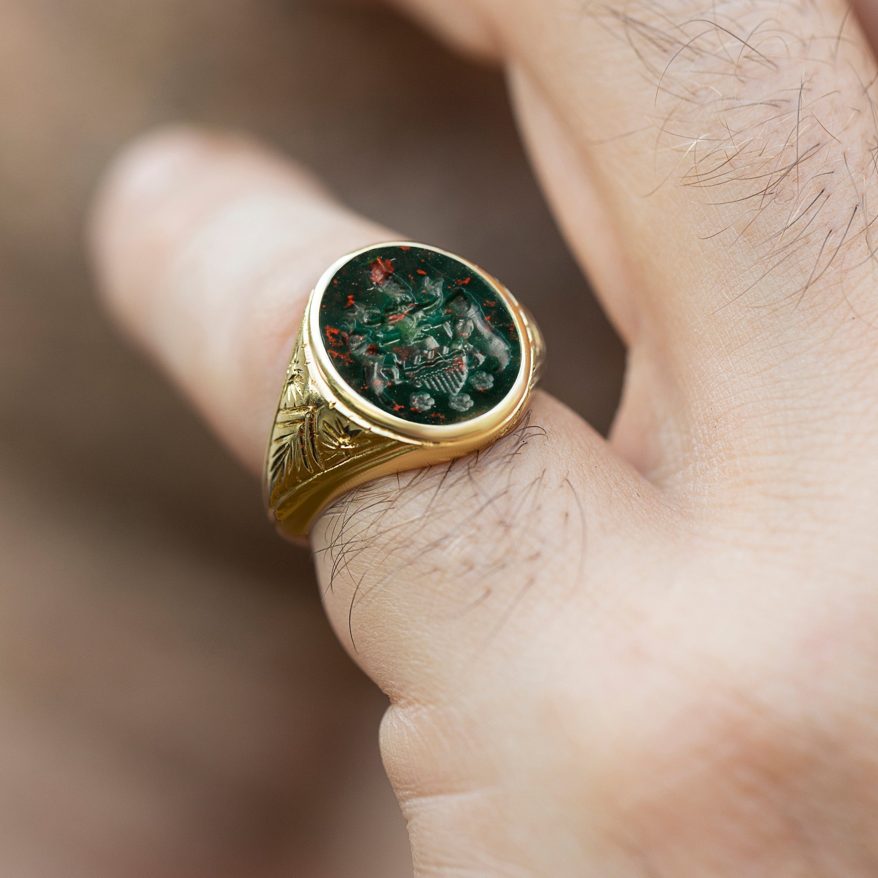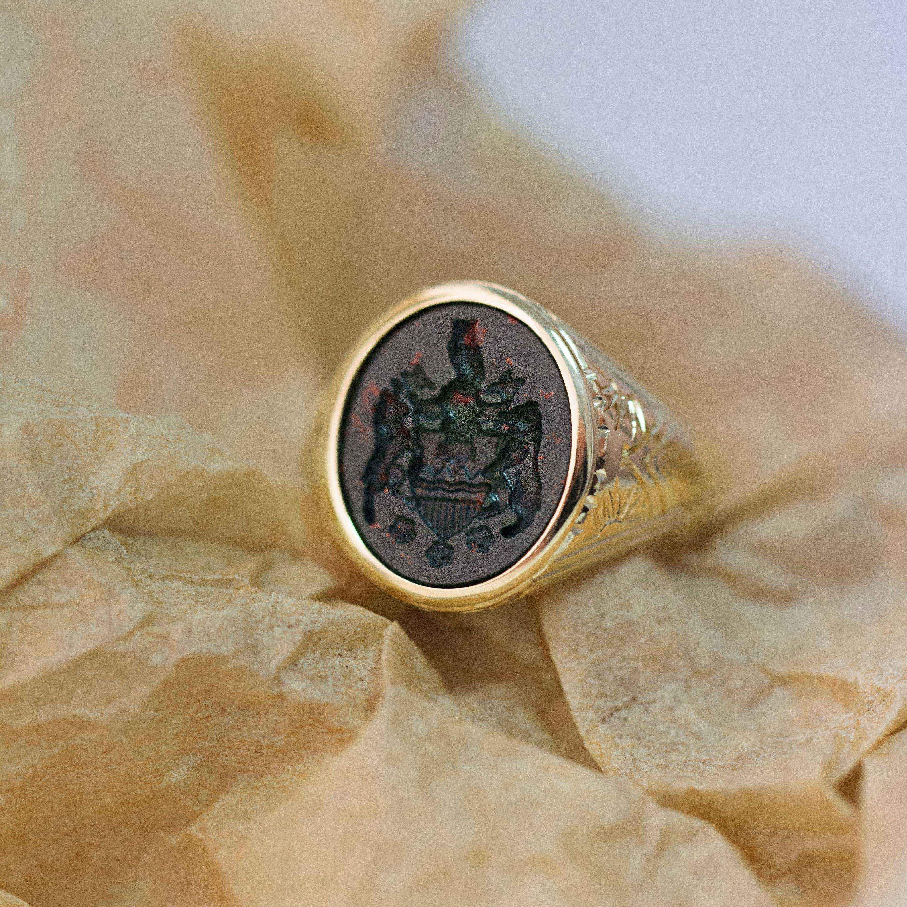 A Bloodstone signet ring that can be carved with your own custom design.