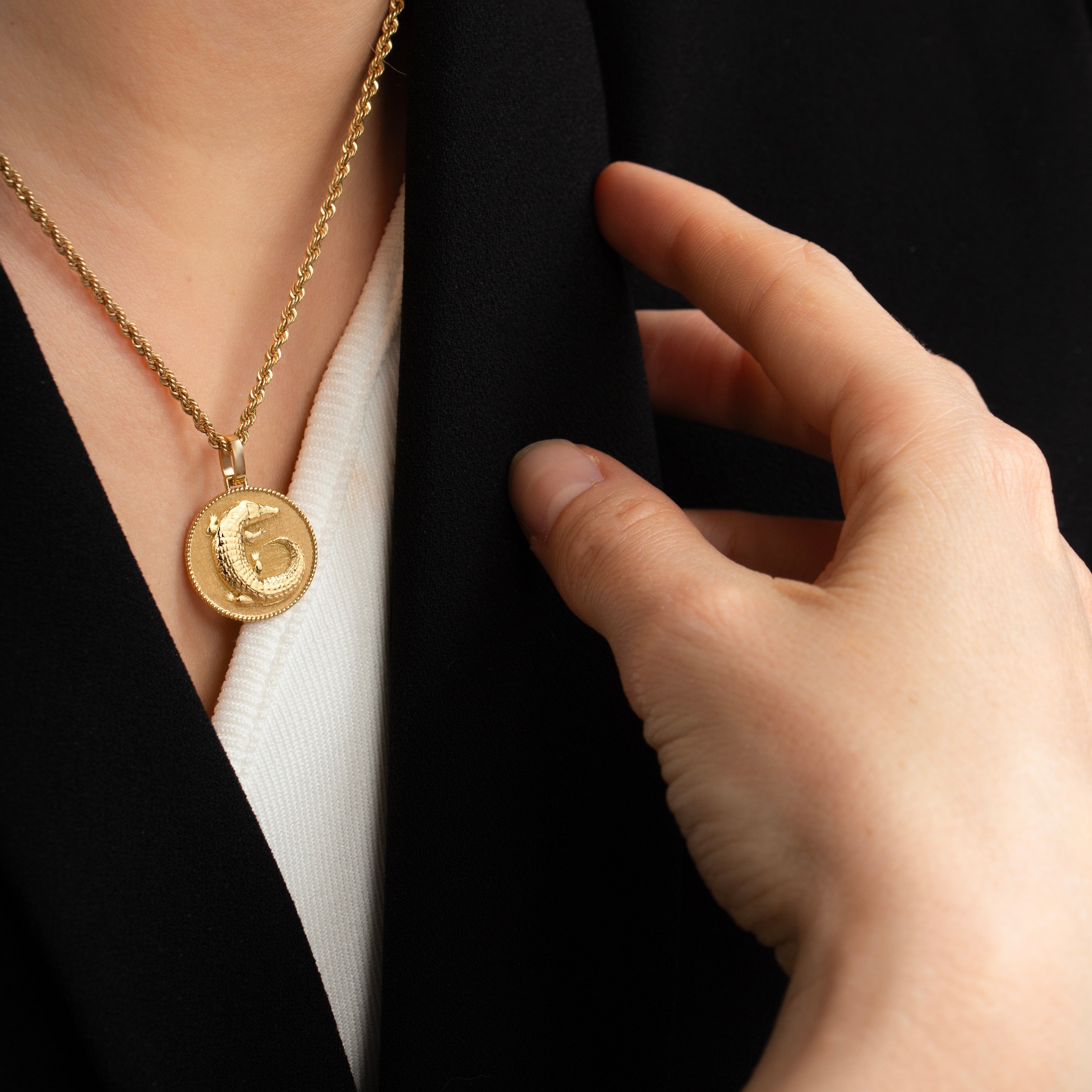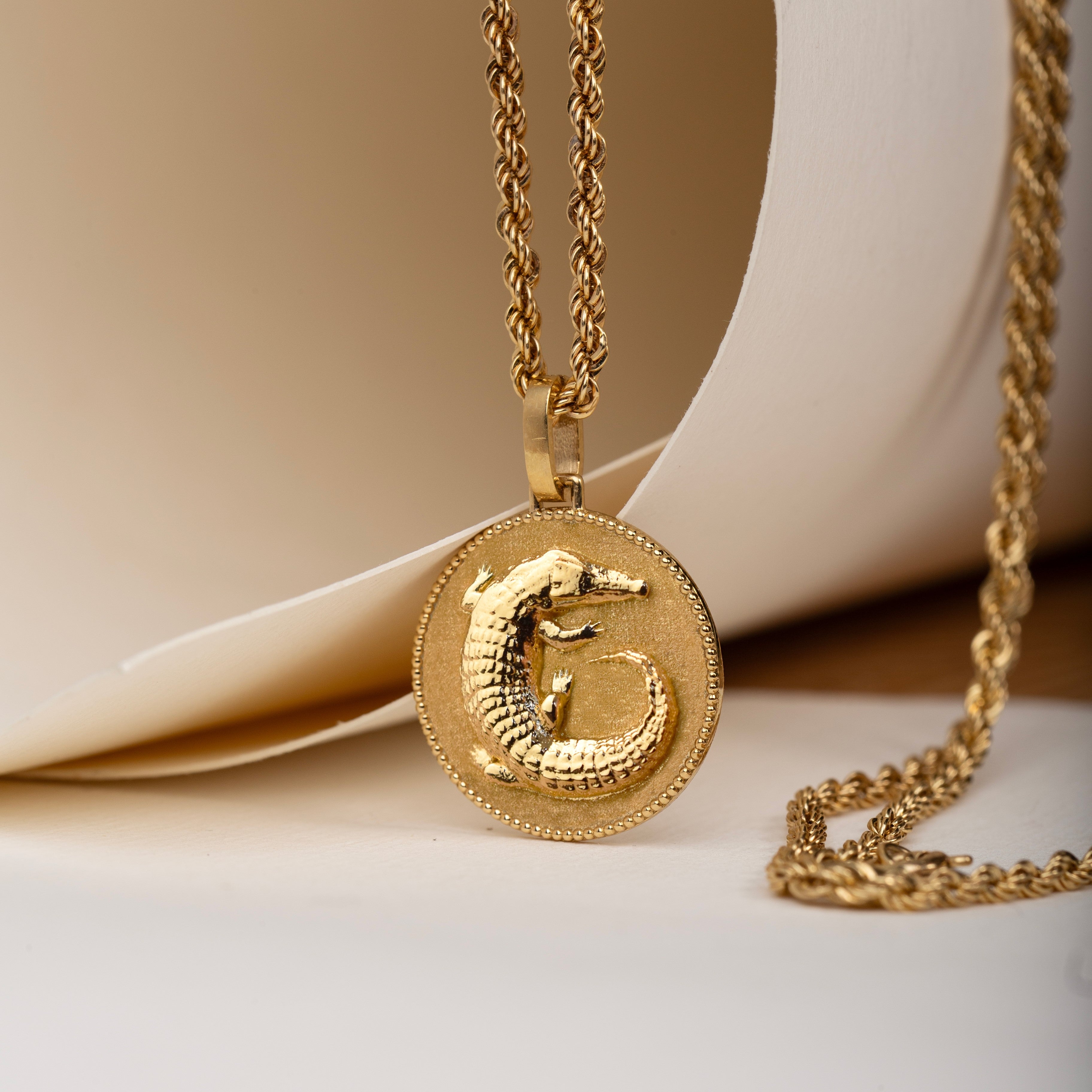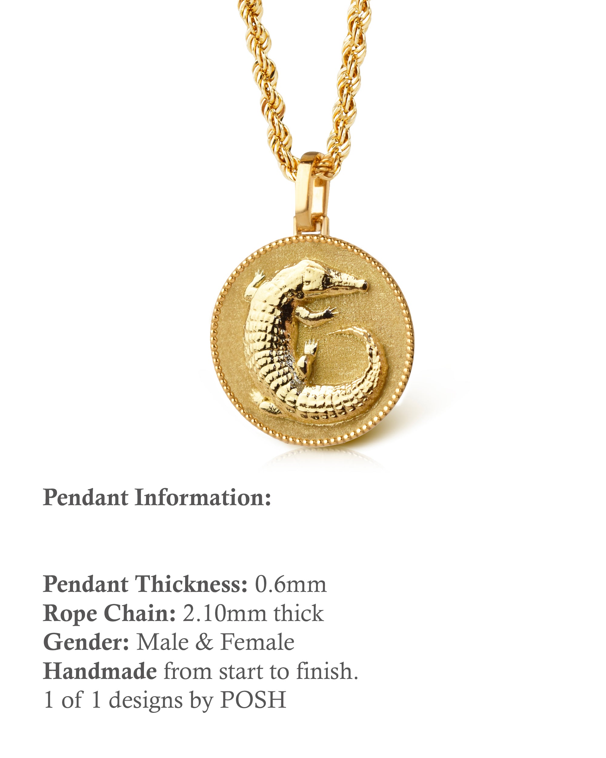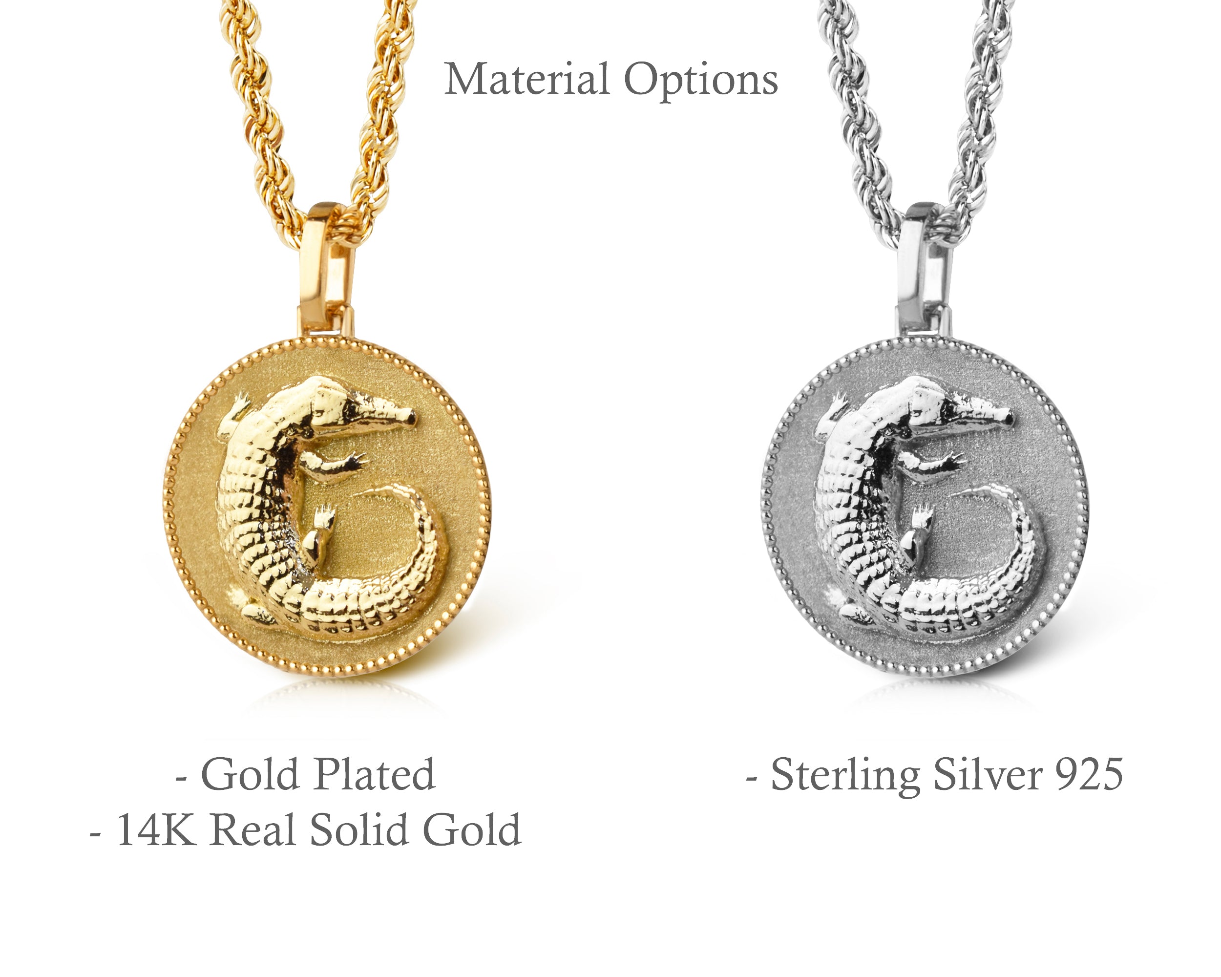Our collection of round pendants with unique designs on top are made for both men and women. Our Alligator necklace can be personalized on the back with a custom message of your choice.