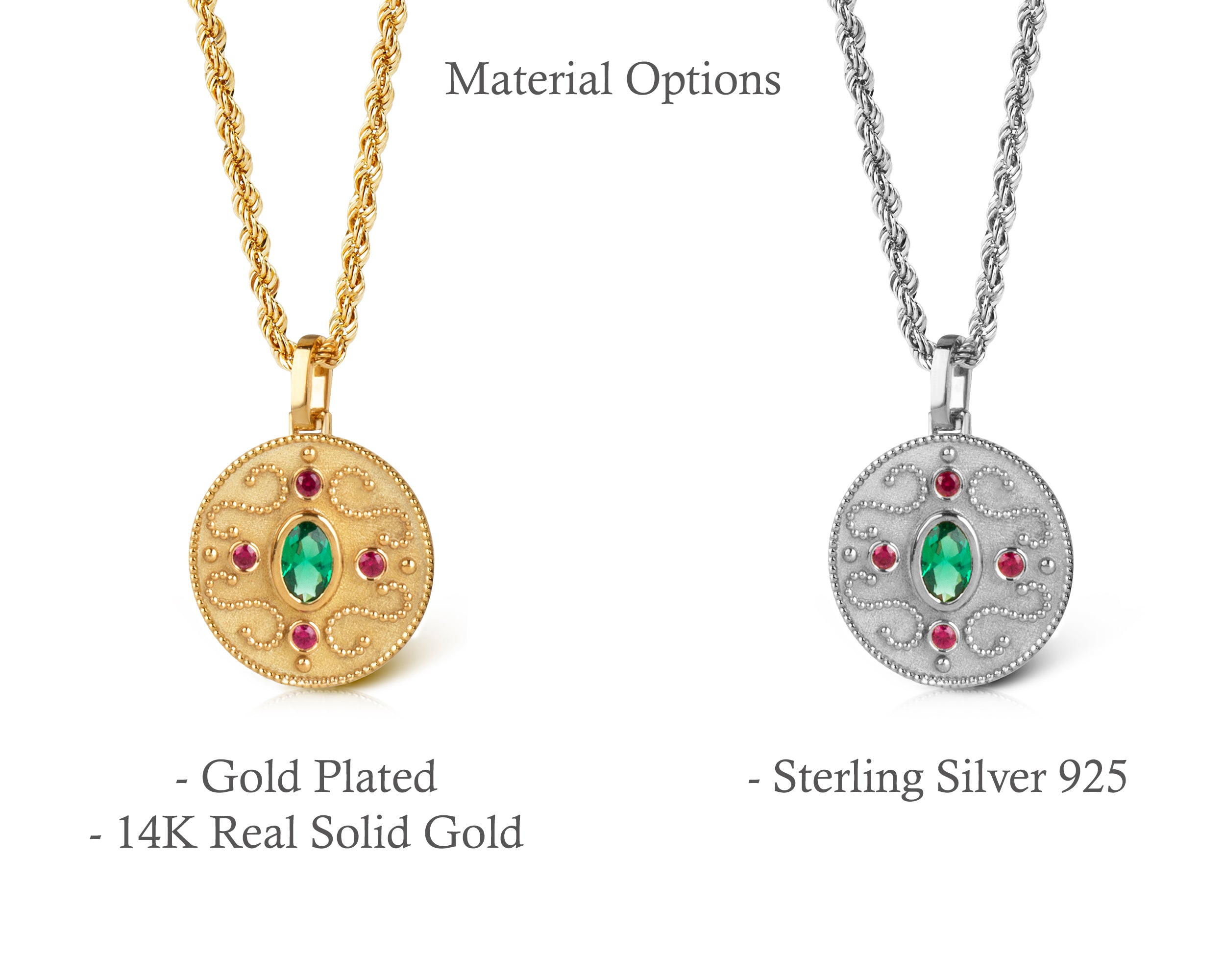 Our collection of round pendants with unique designs on top are made for both men and women.