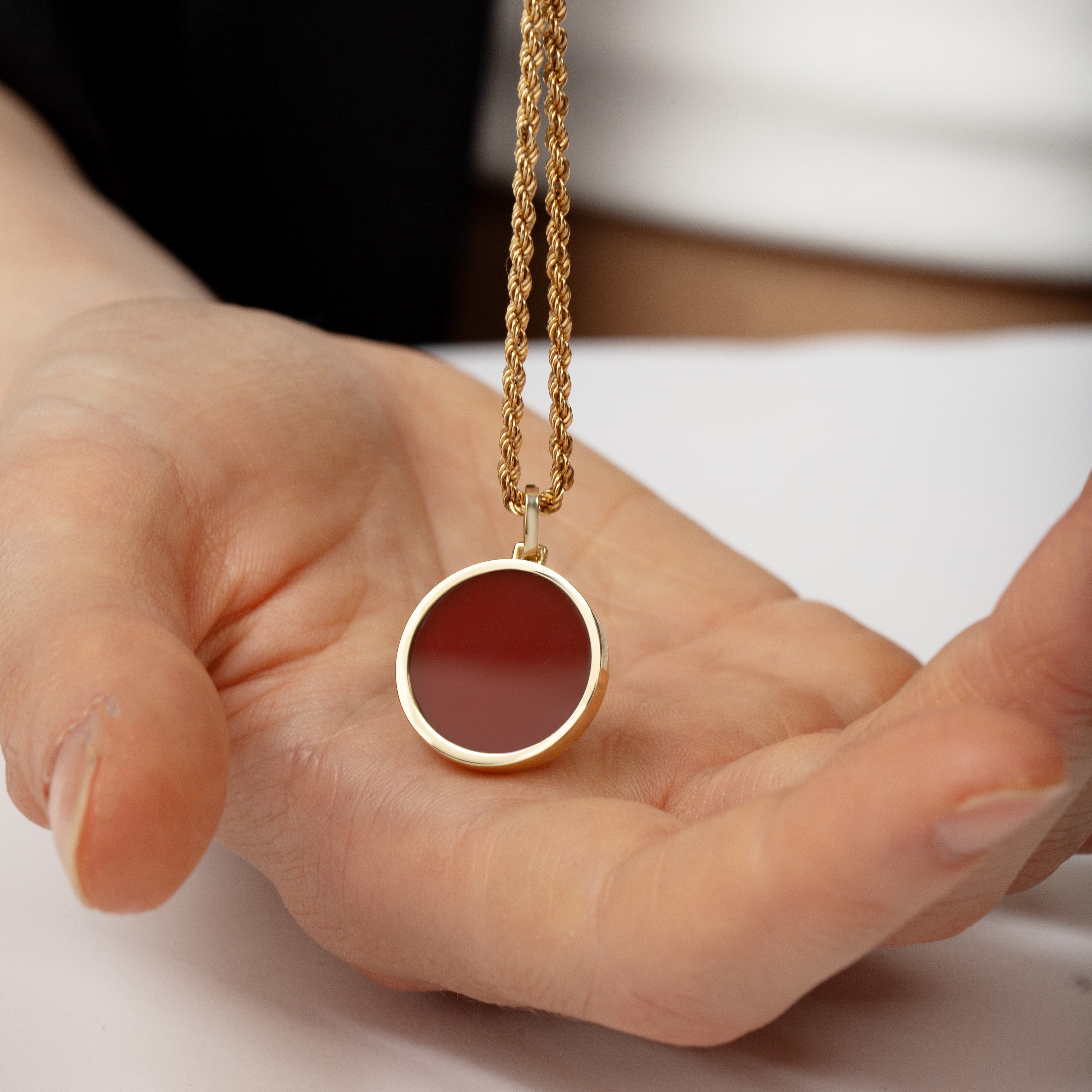 A hallmark (stamp) of the material of your pendant will be included on the back for certification.