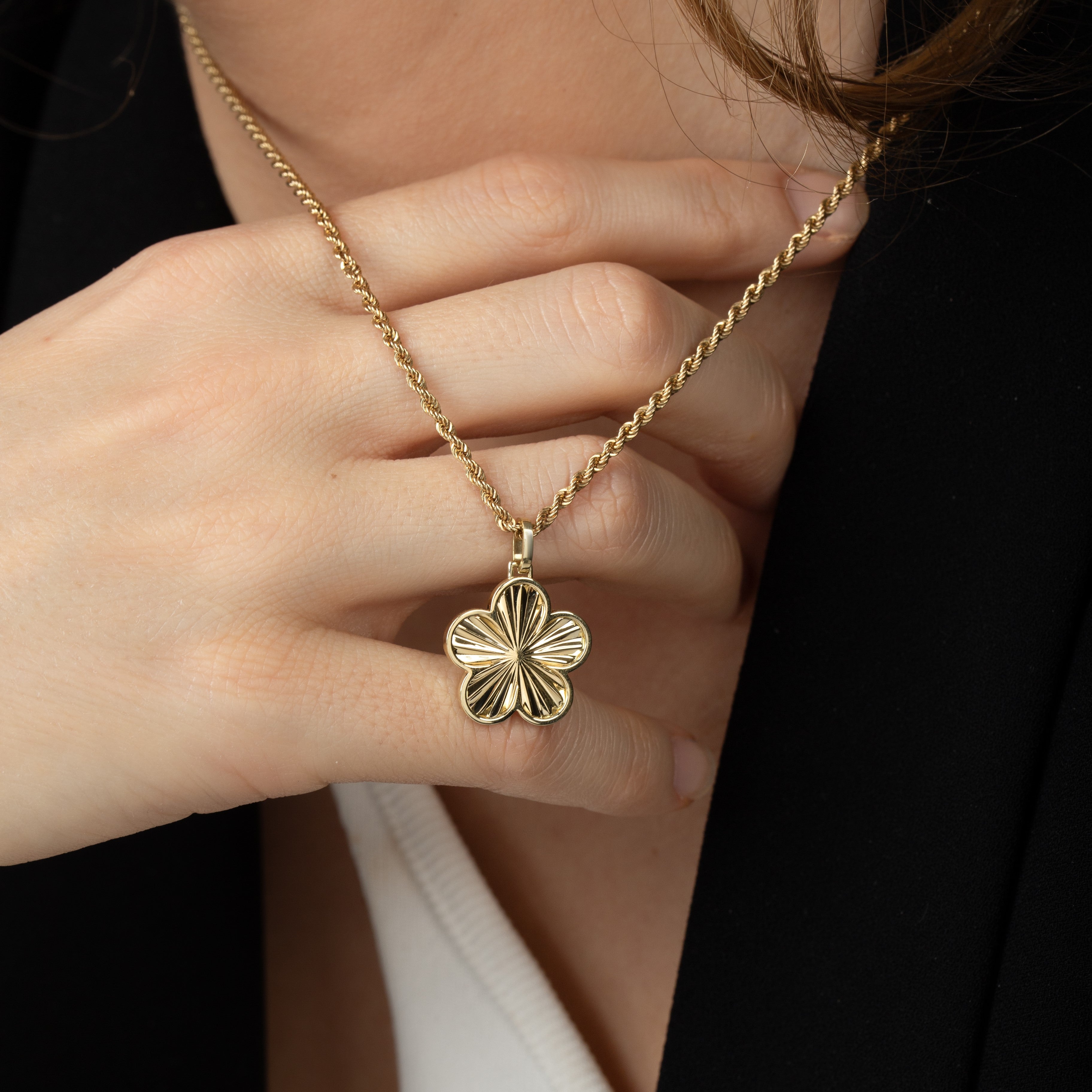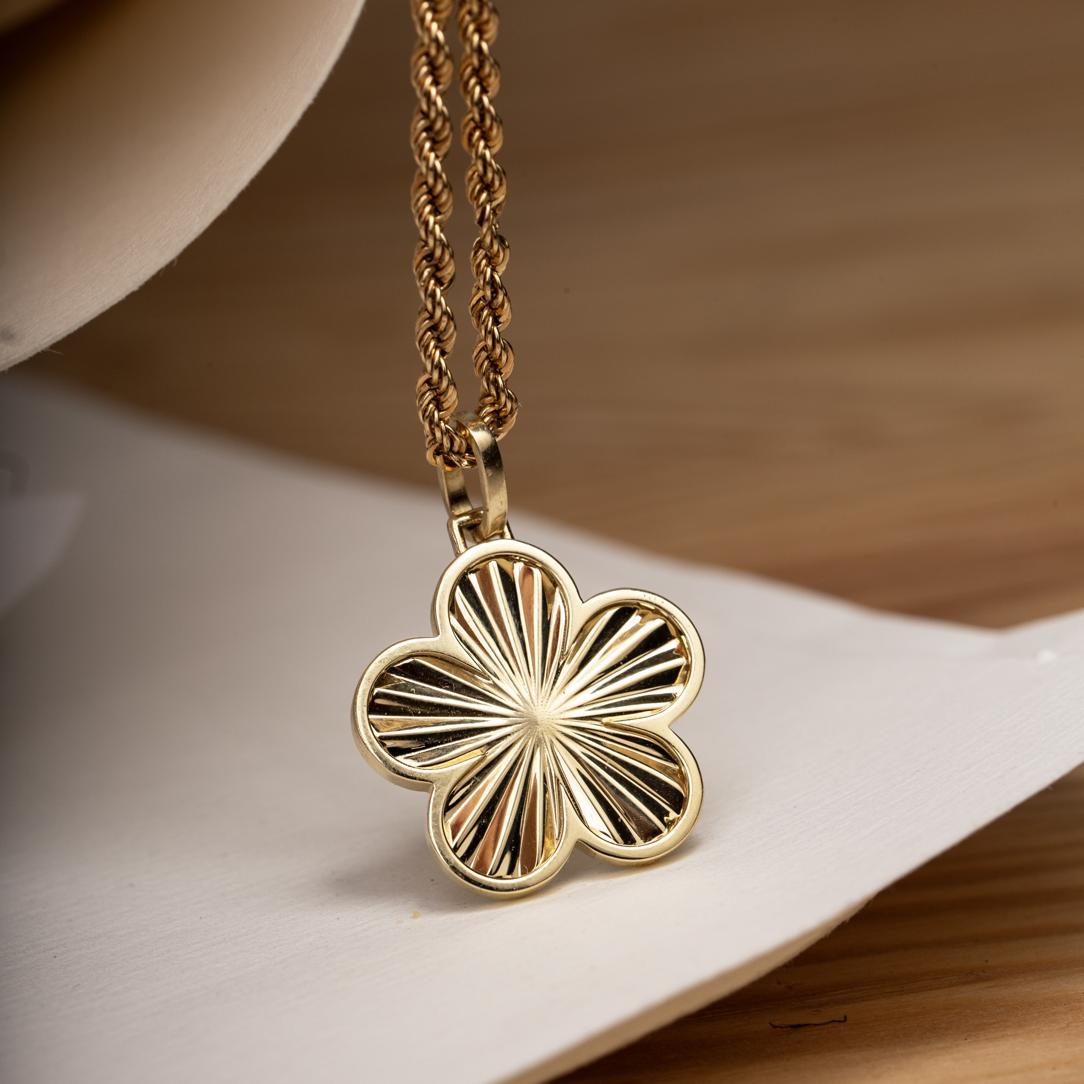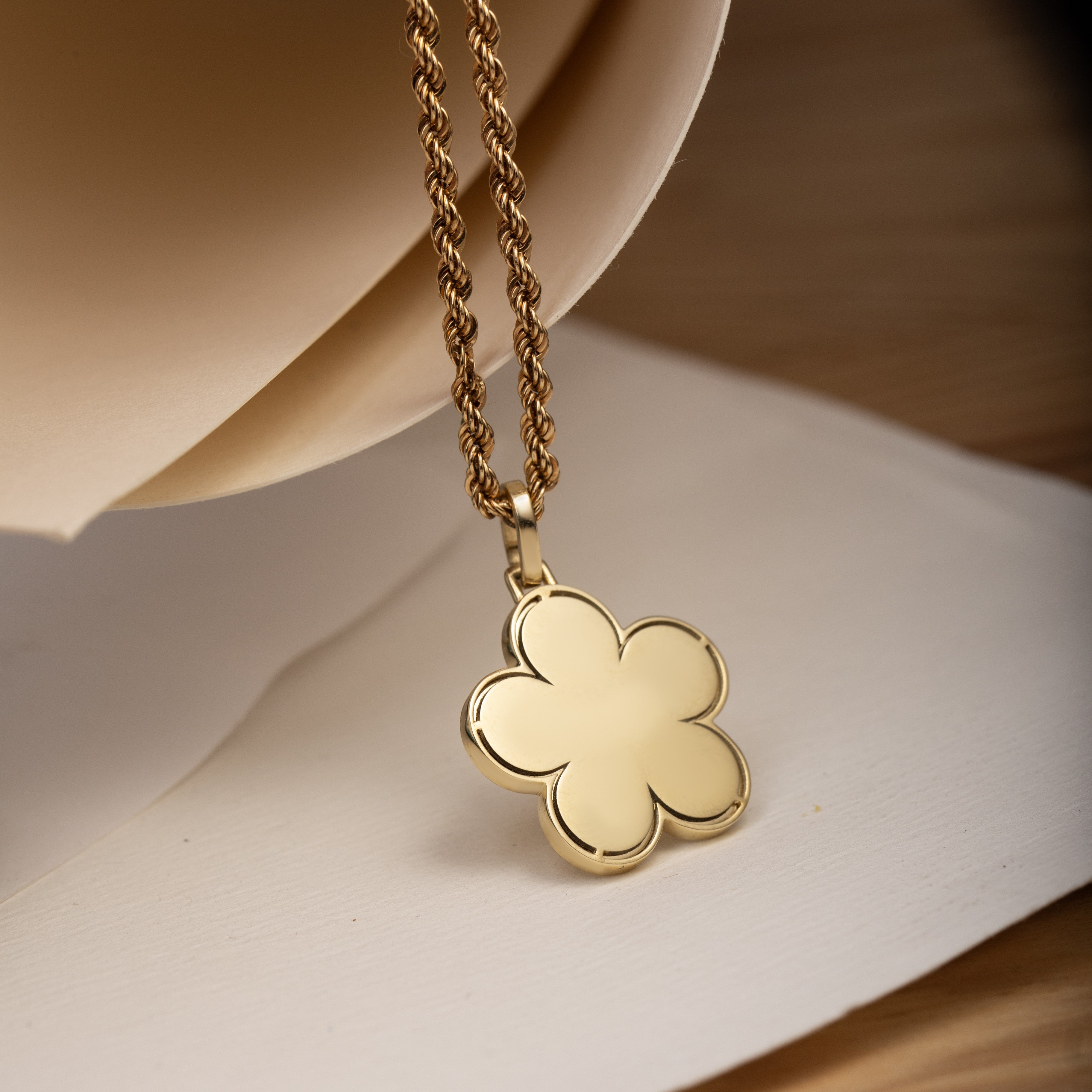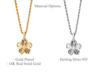 Our collection of round pendants with unique designs on top are made for both men and women. Our Five Leaf Clover necklace can be personalized on the back with a custom message of your choice.