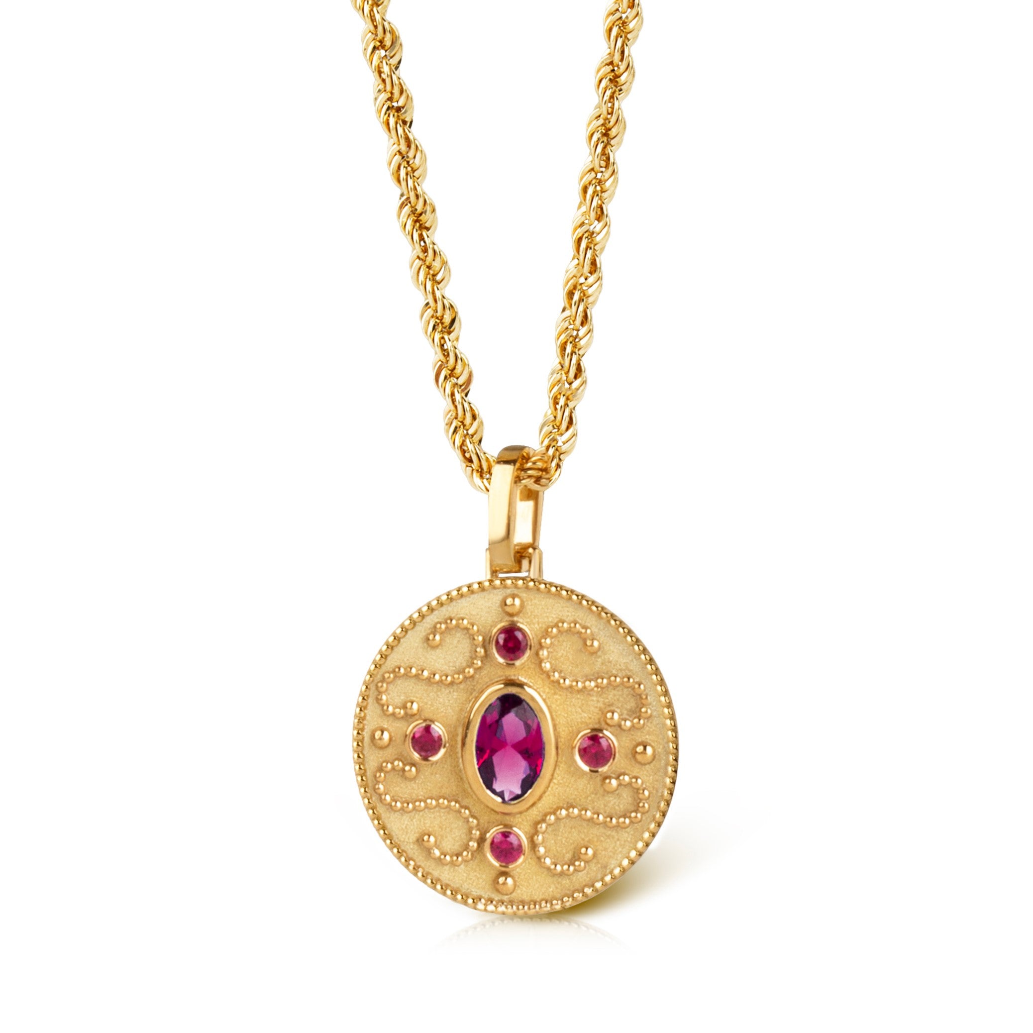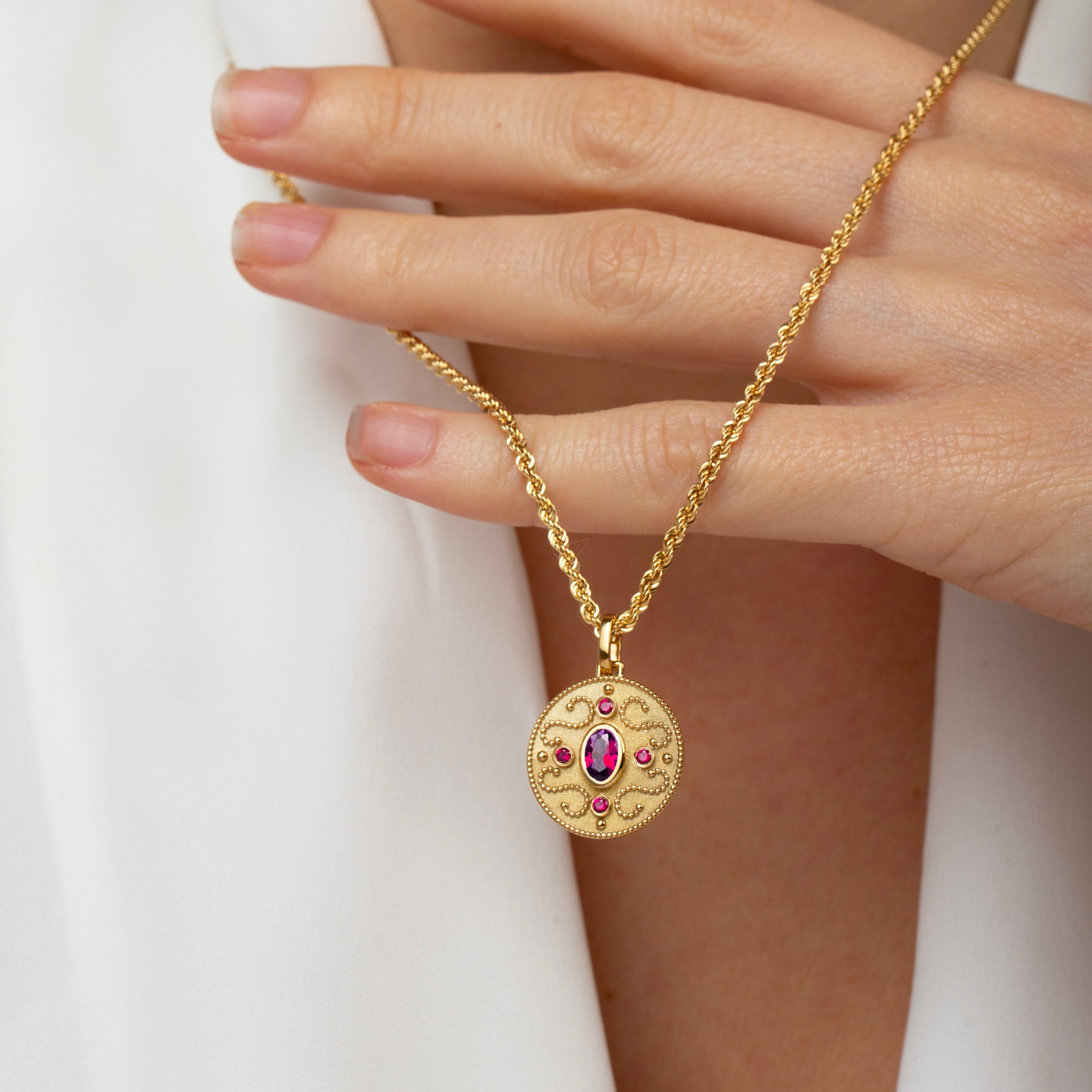 Our collection of round pendants with unique designs on top are made for both men and women.