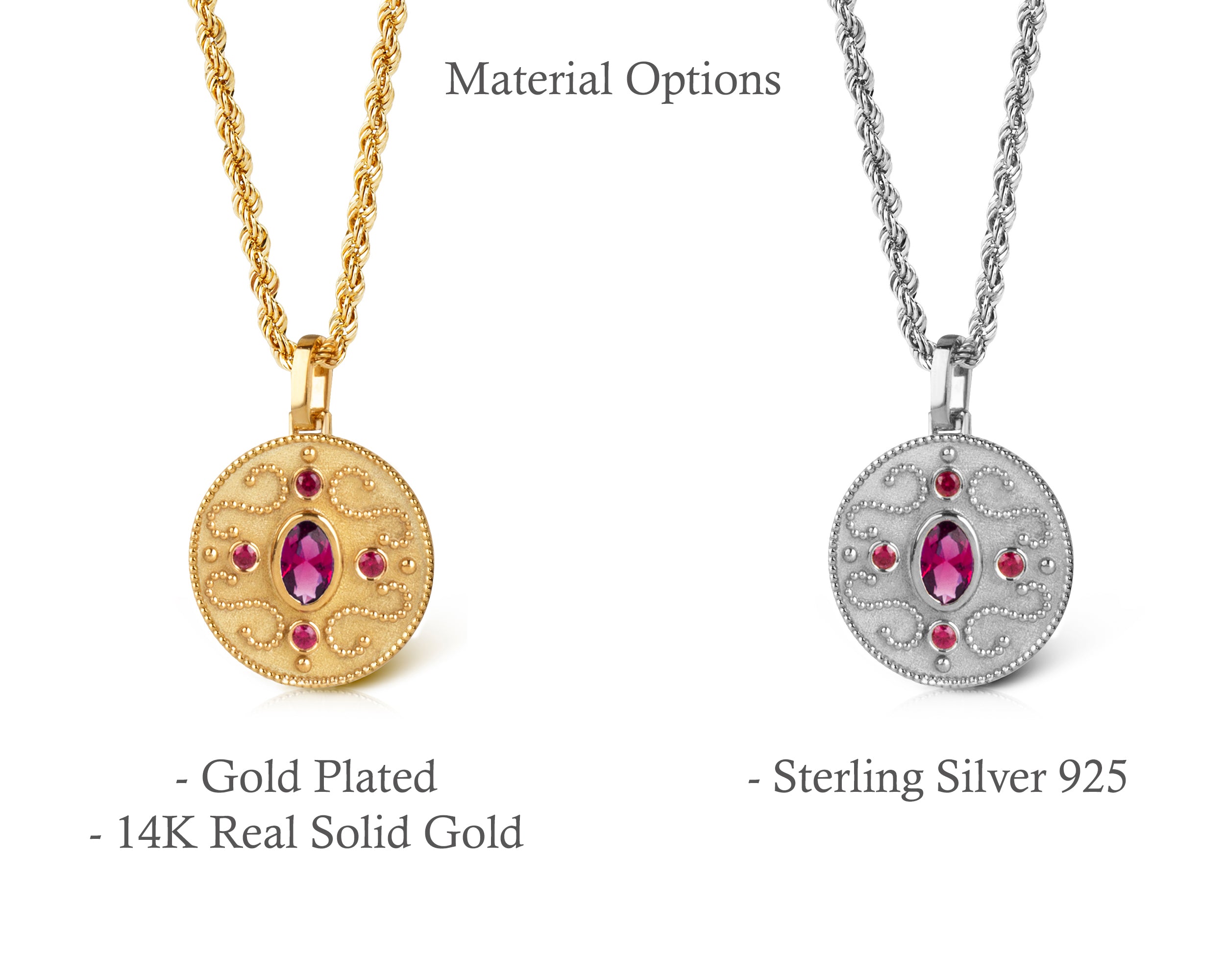 A hallmark (stamp) of the material of your pendant will be included on the back for certification.