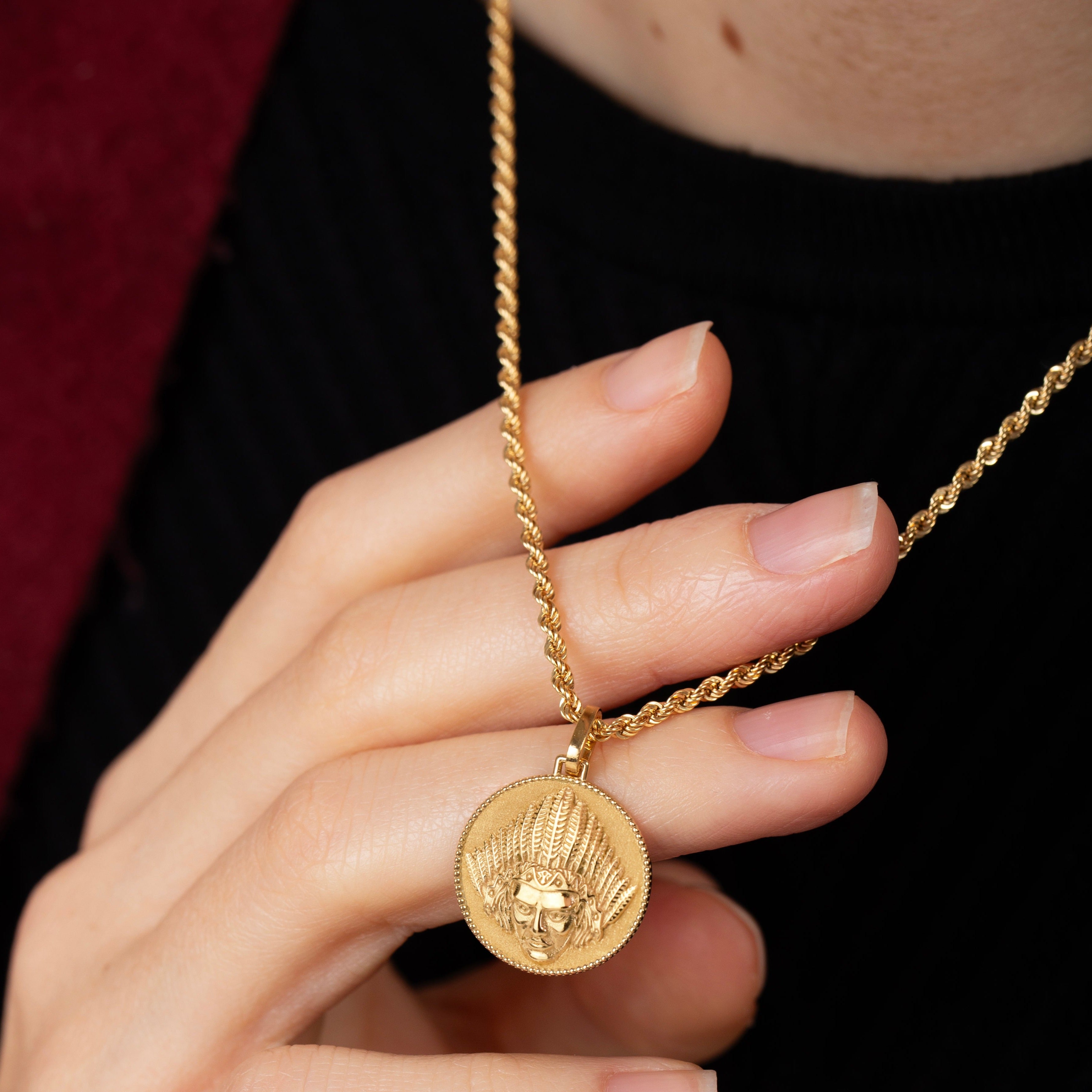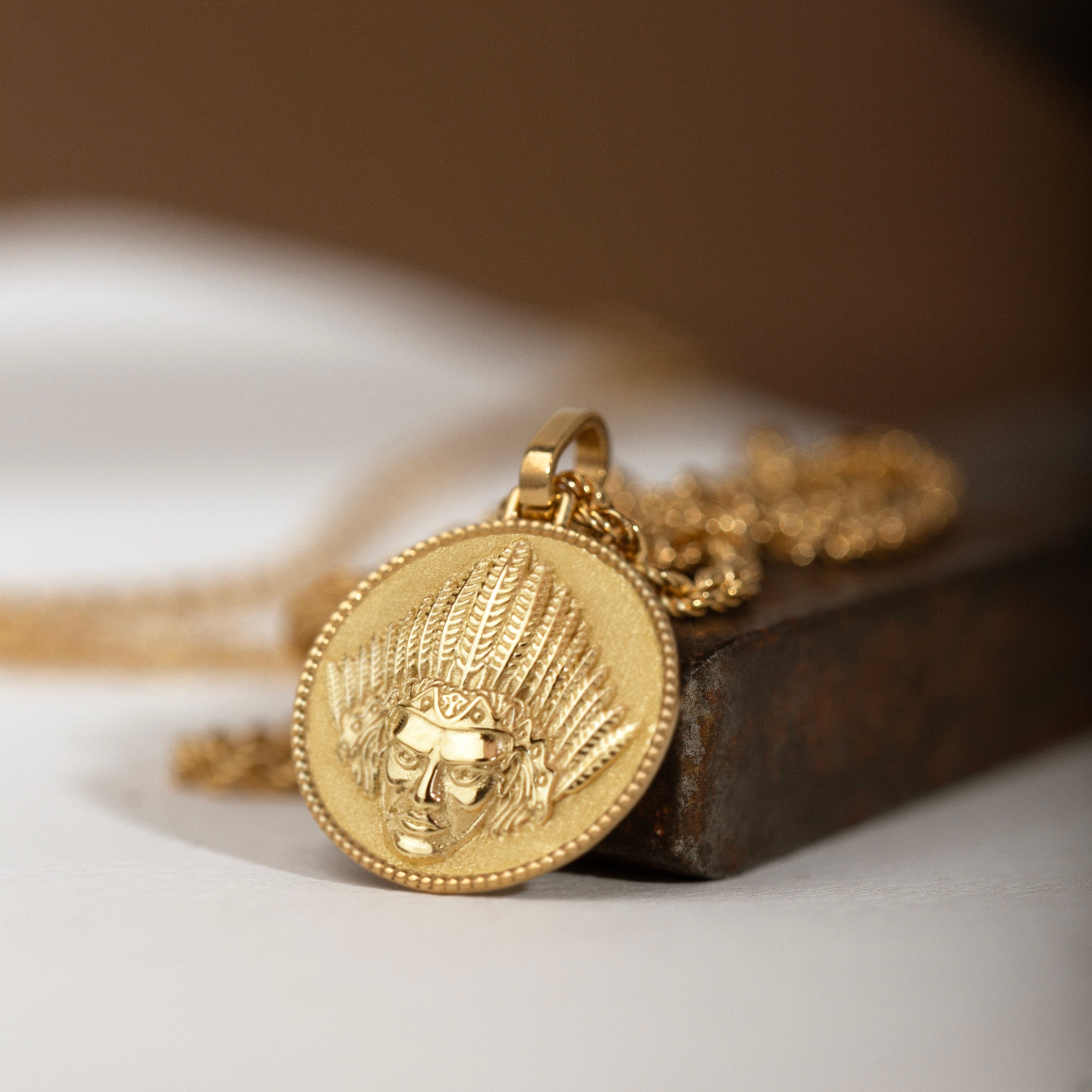 Our collection of round pendants with unique designs on top are made for both men and women. Our indegenous necklace can be personalized on the back with a custom message of your choice.