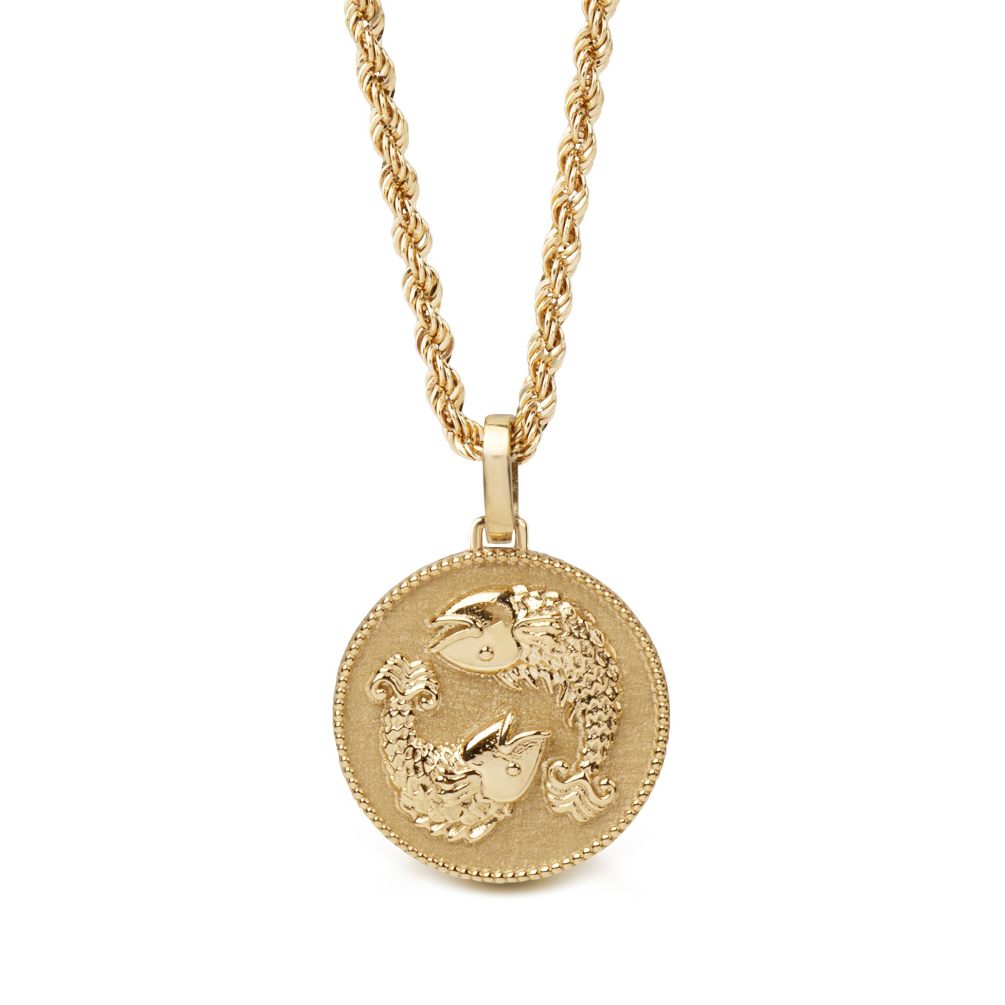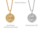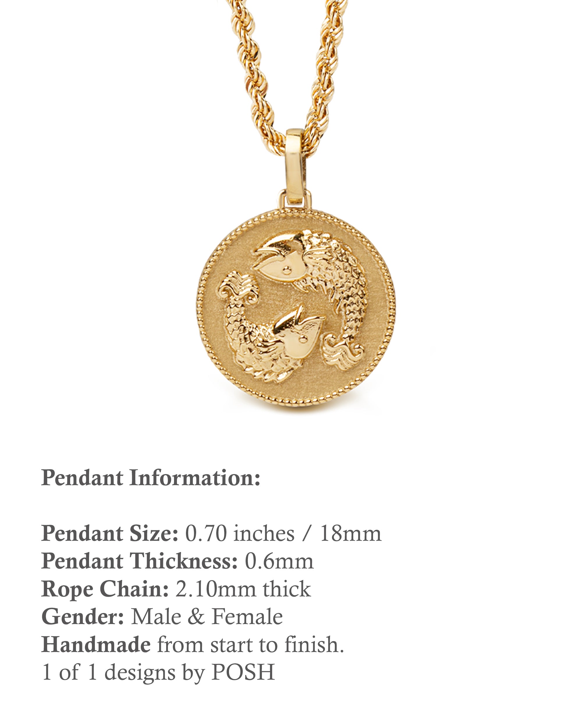 Our collection of round pendants with unique designs on top are made for both men and women. Our Pisces necklace can be personalized on the back with a custom message of your choice.