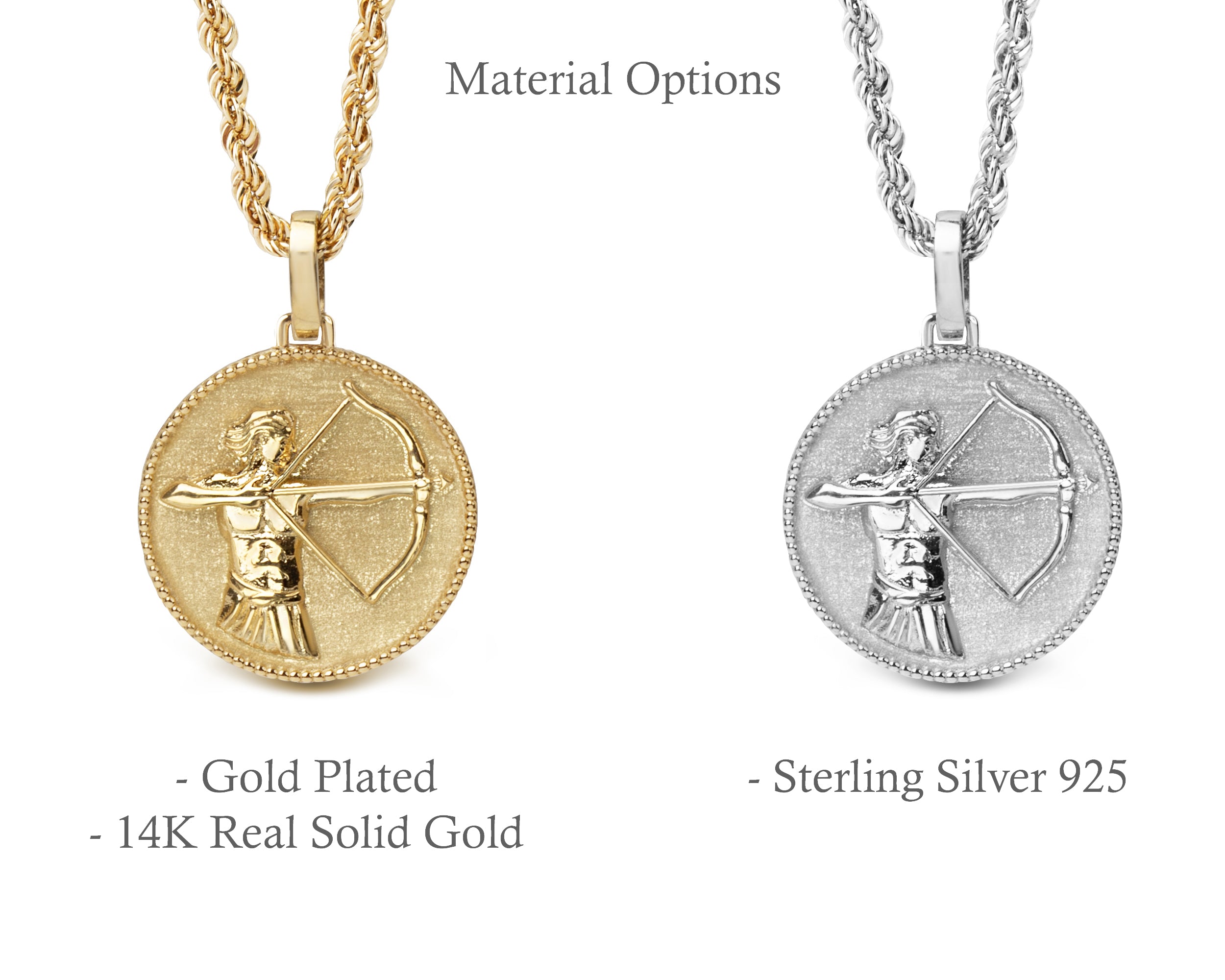 Our collection of round pendants with unique designs on top are made for both men and women. Our Sagittarius Zodiac necklace can be personalized on the back with a custom message of your choice.
