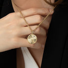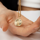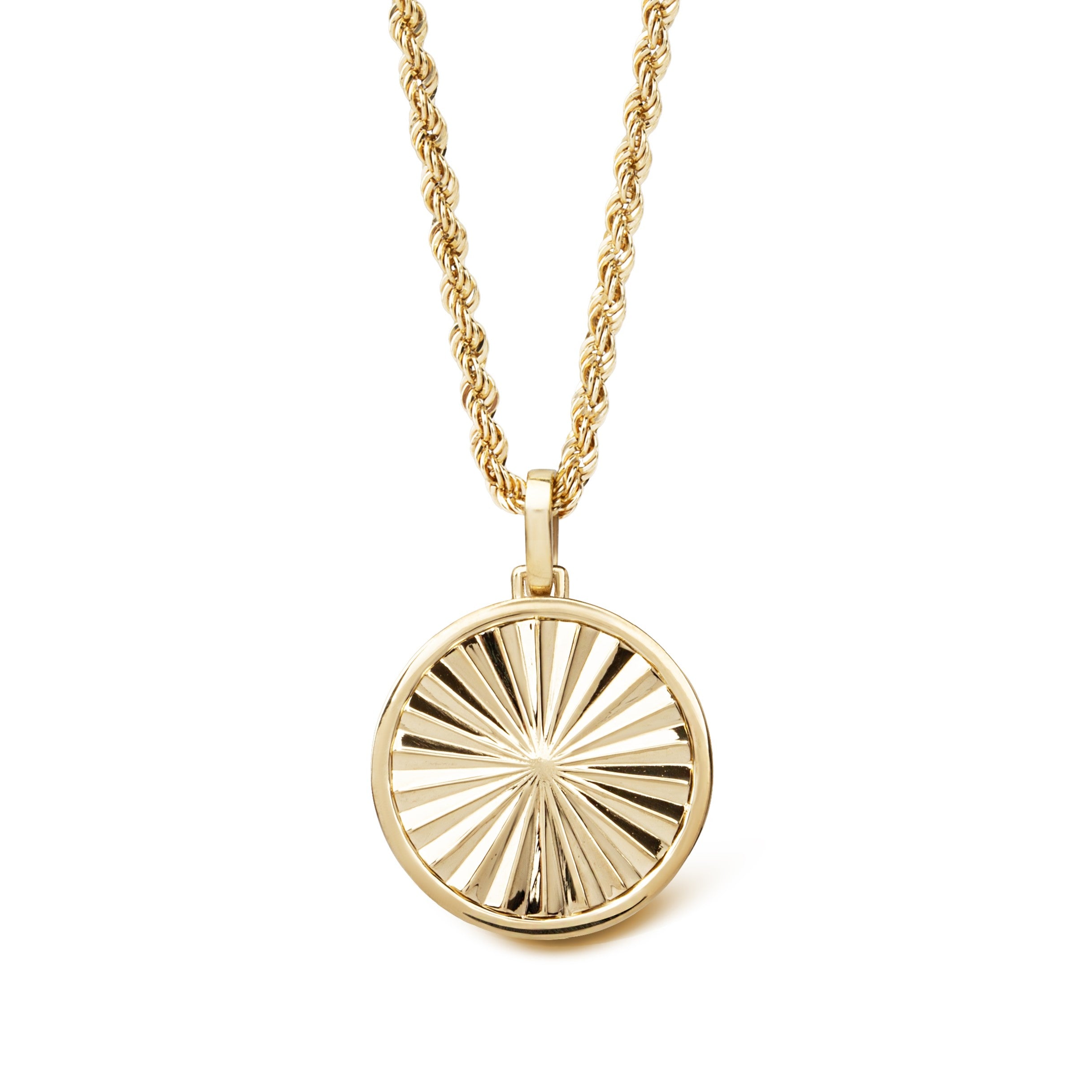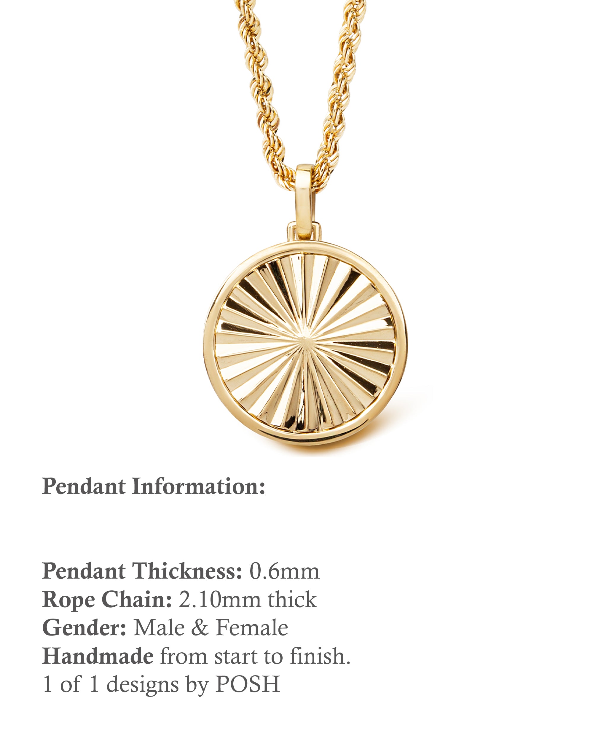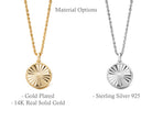 Our collection of round pendants with unique designs on top are made for both men and women. Our Sun necklace can be personalized on the back with a custom message of your choice.
