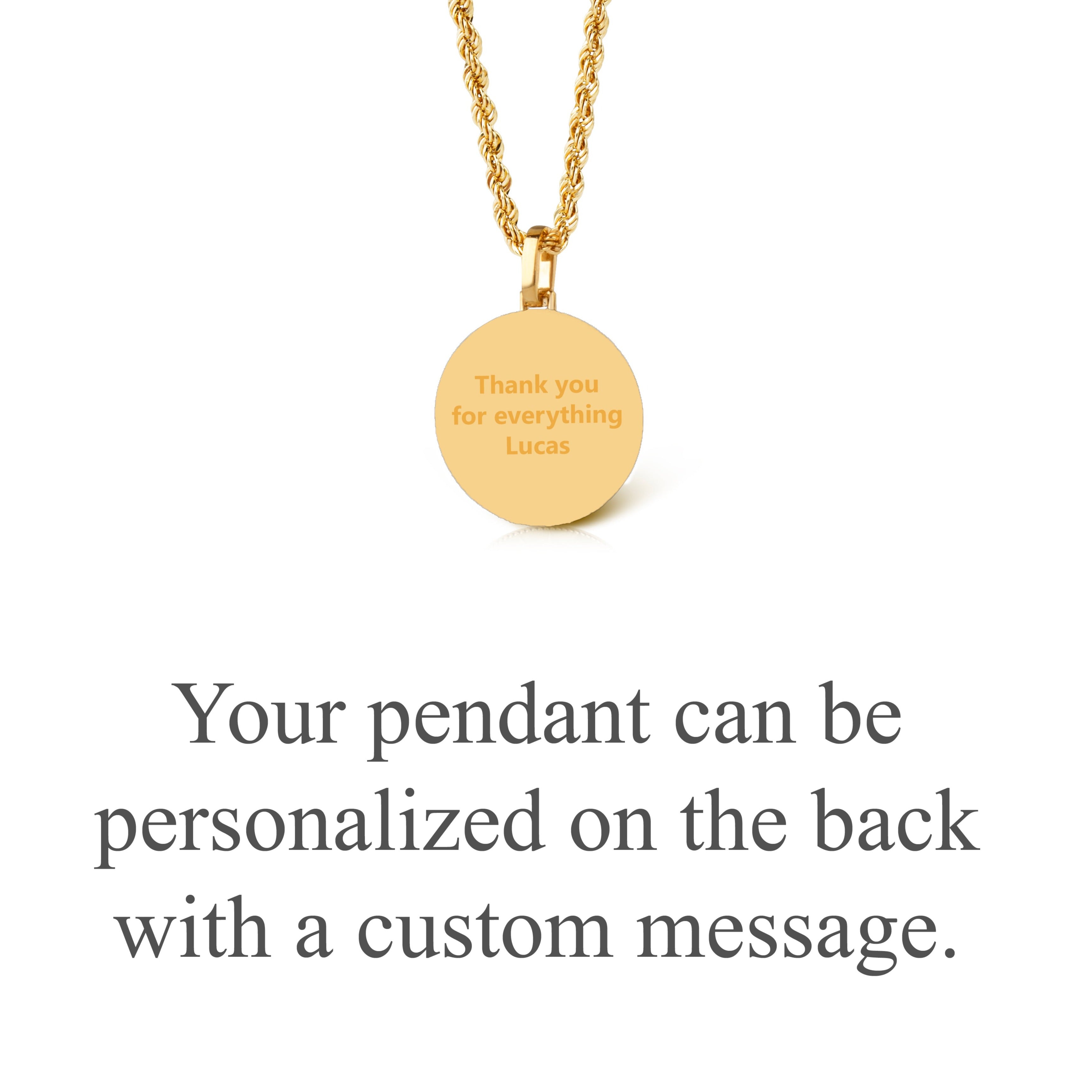 A hallmark (stamp) of the material of your pendant will be included on the back for certification.