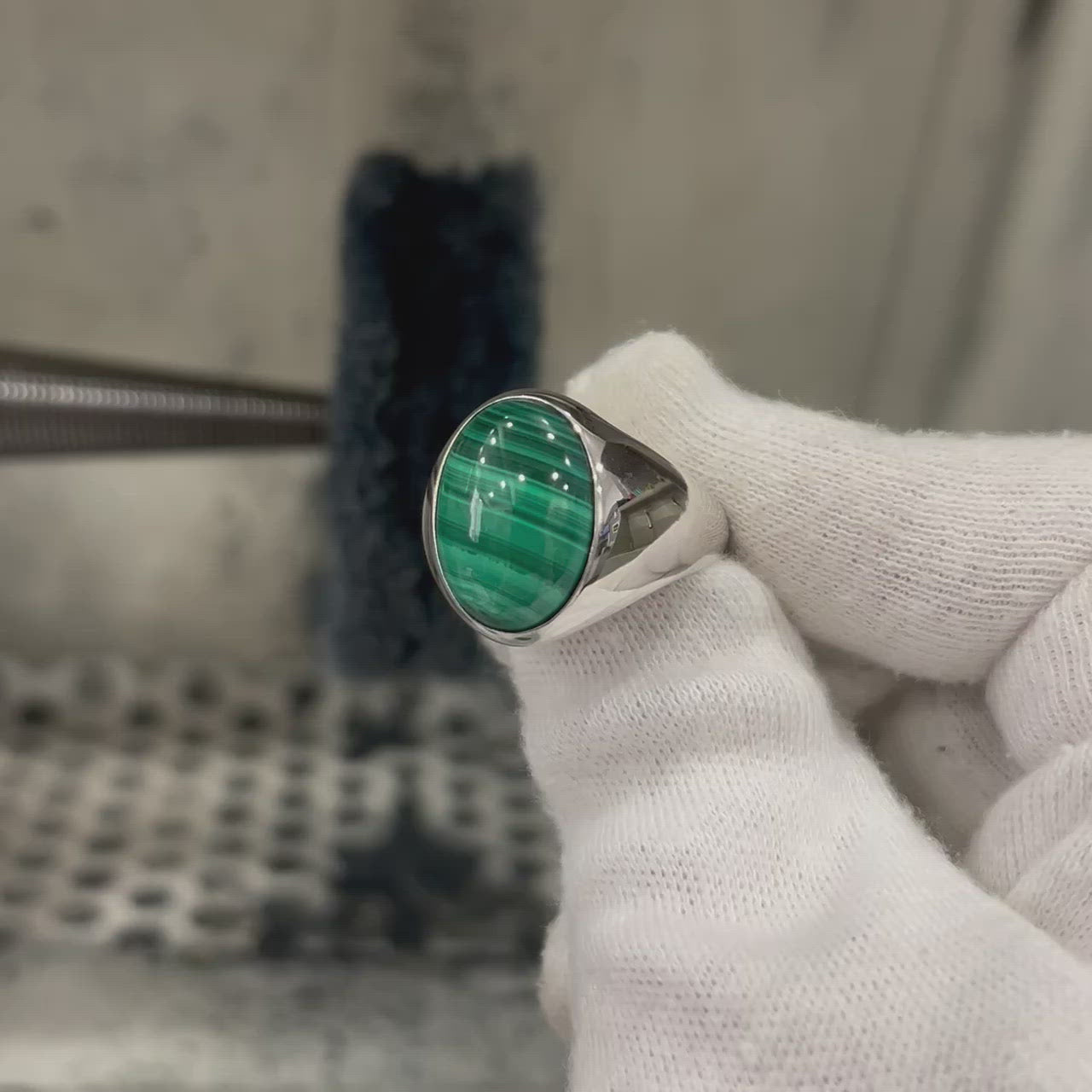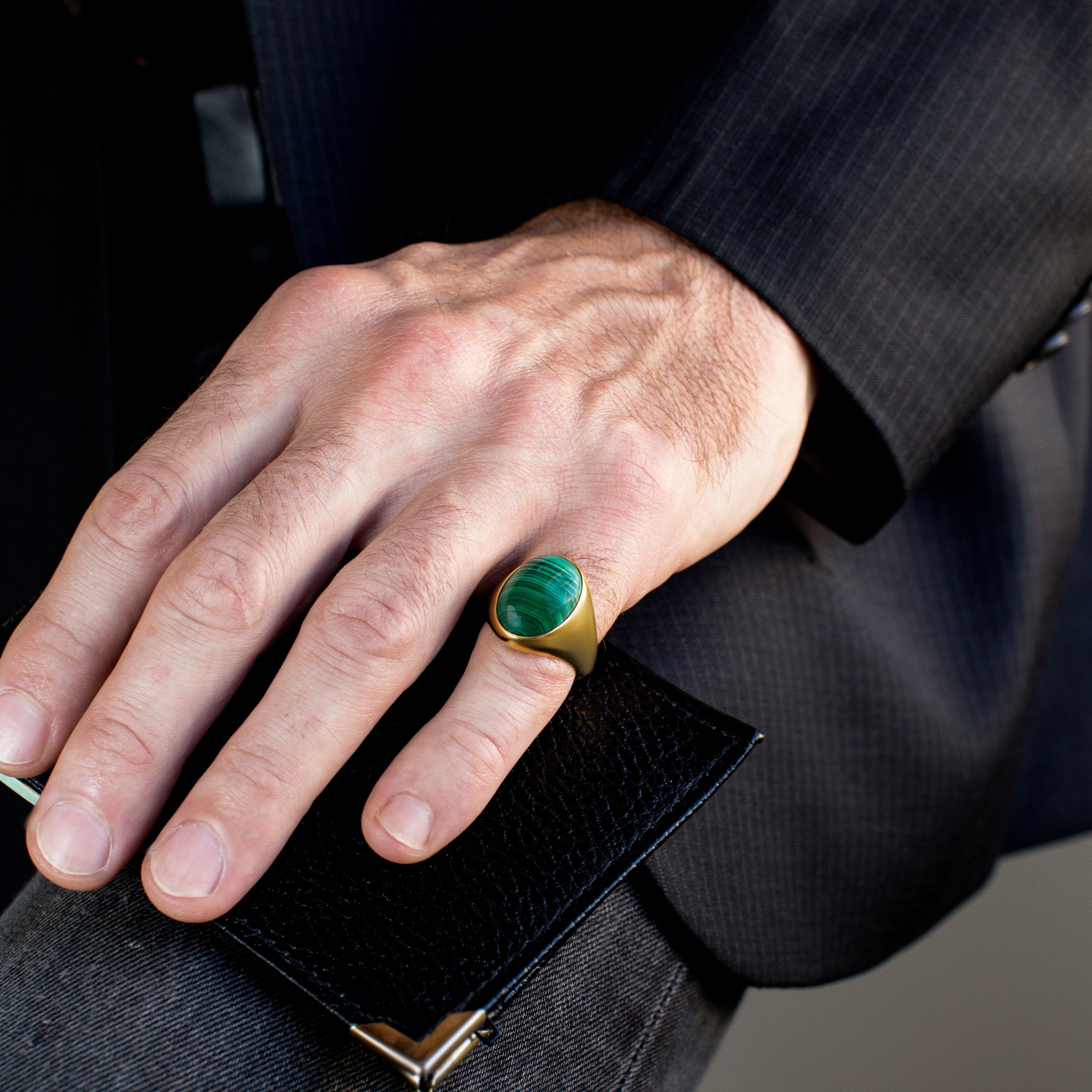 LARGE MALACHITE SIGNET RING
