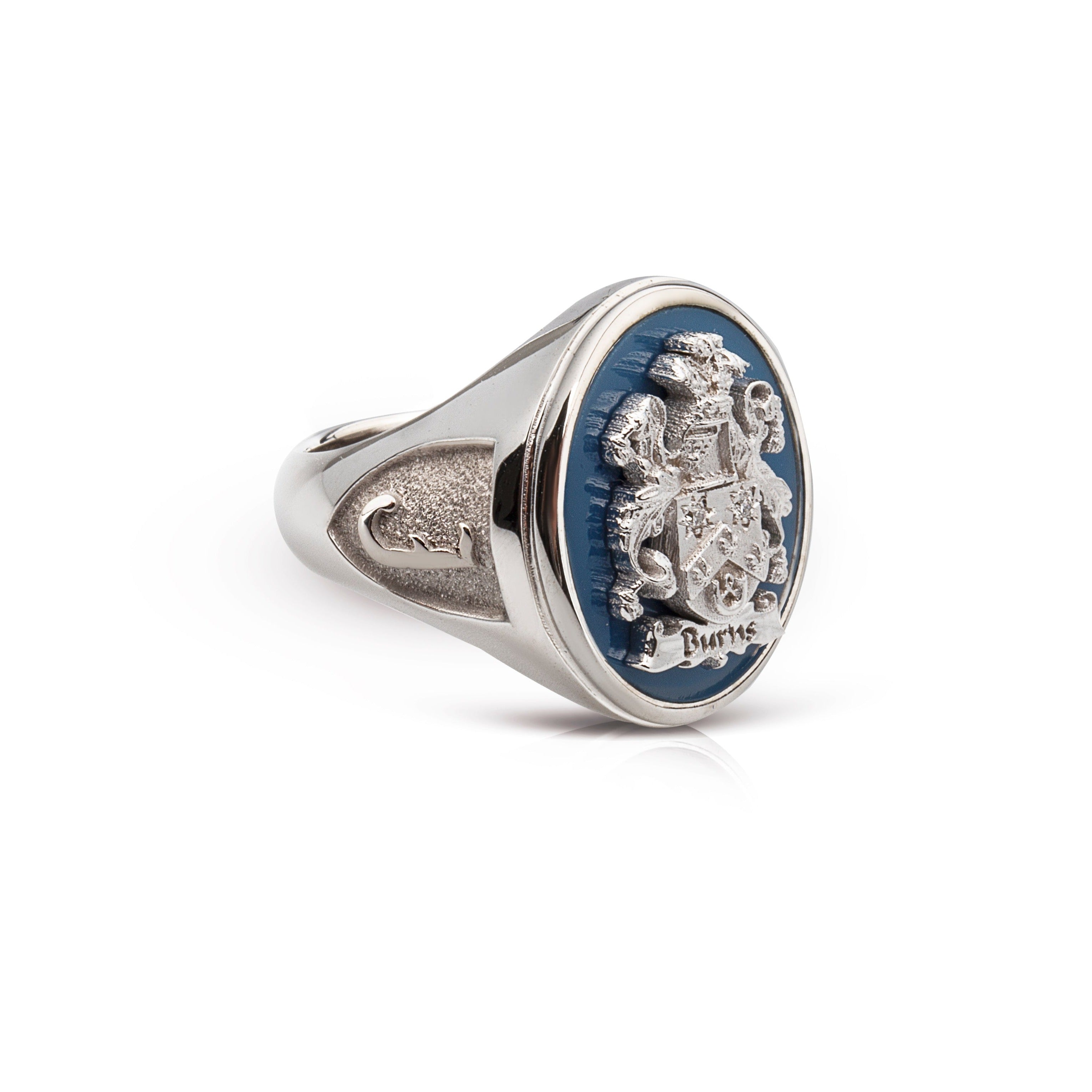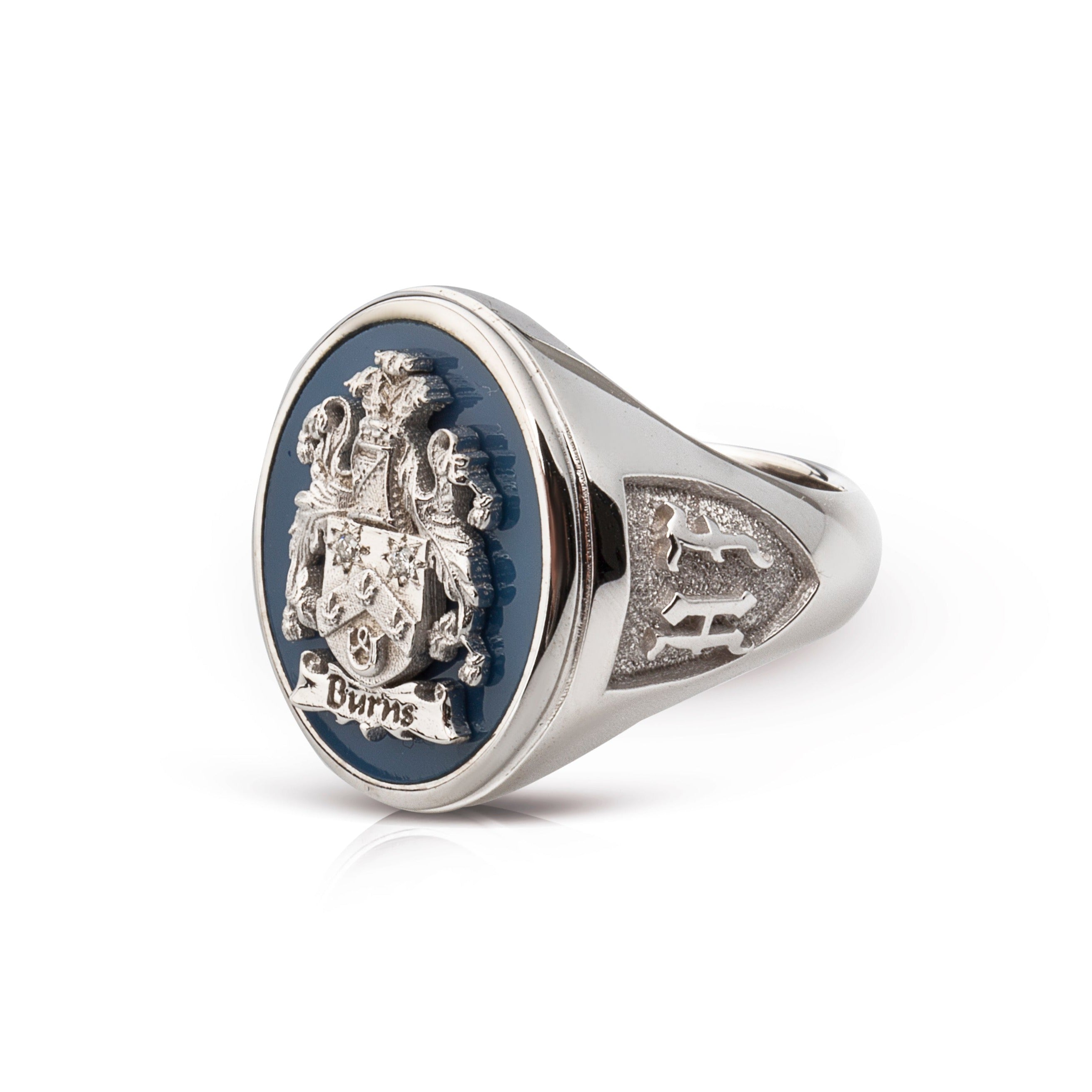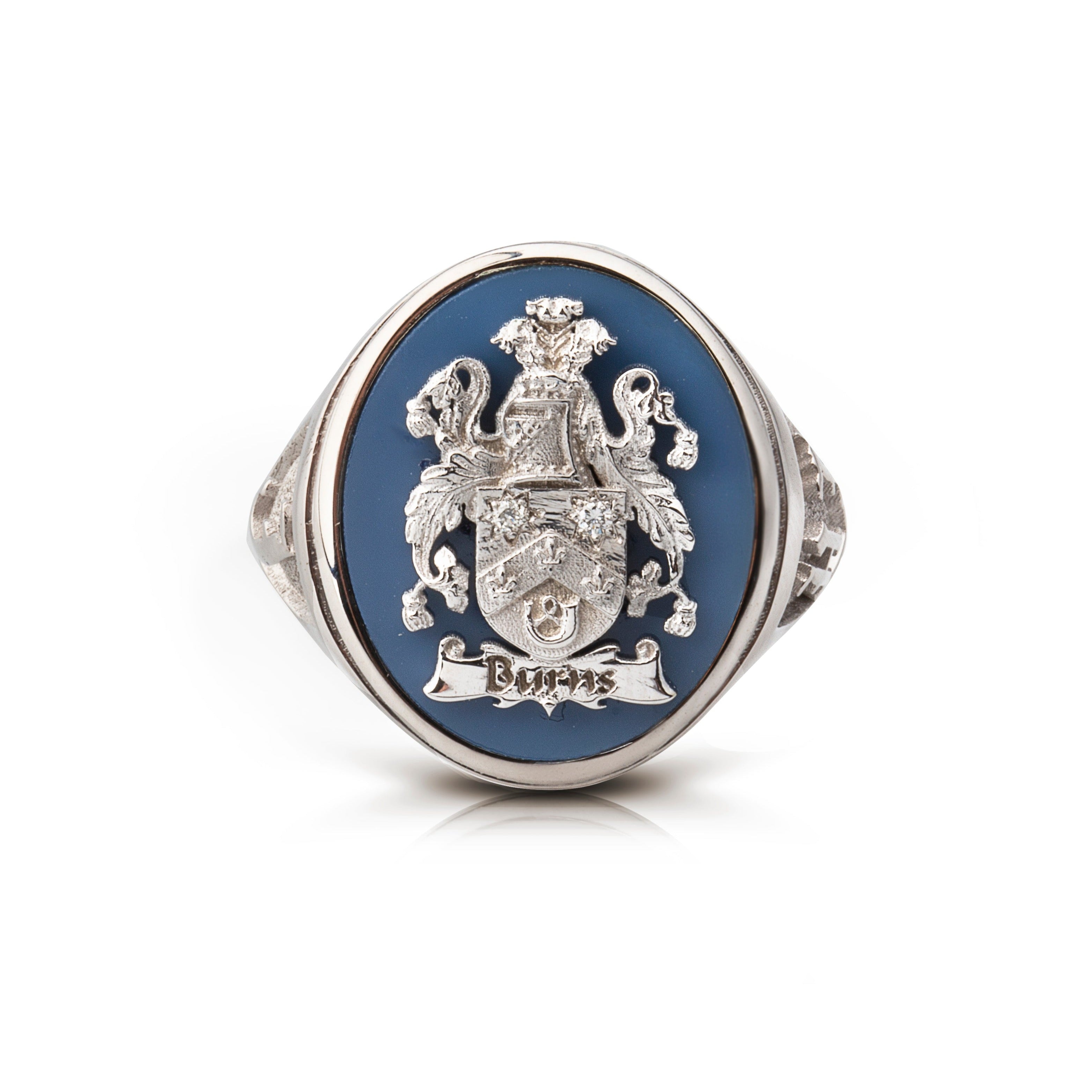 Blue Agate Coat In Arms Signet Rings - Family Crescent Rings Engraved - Arms Shield Custom Signet Ring