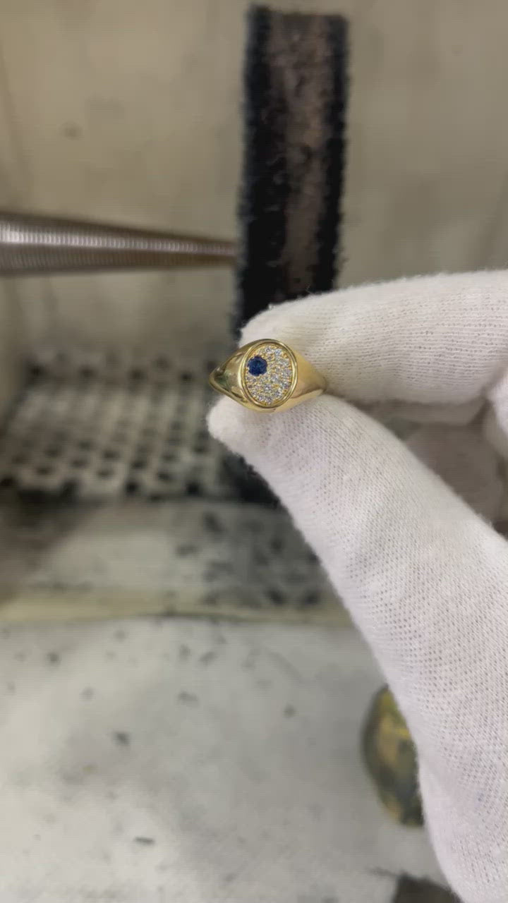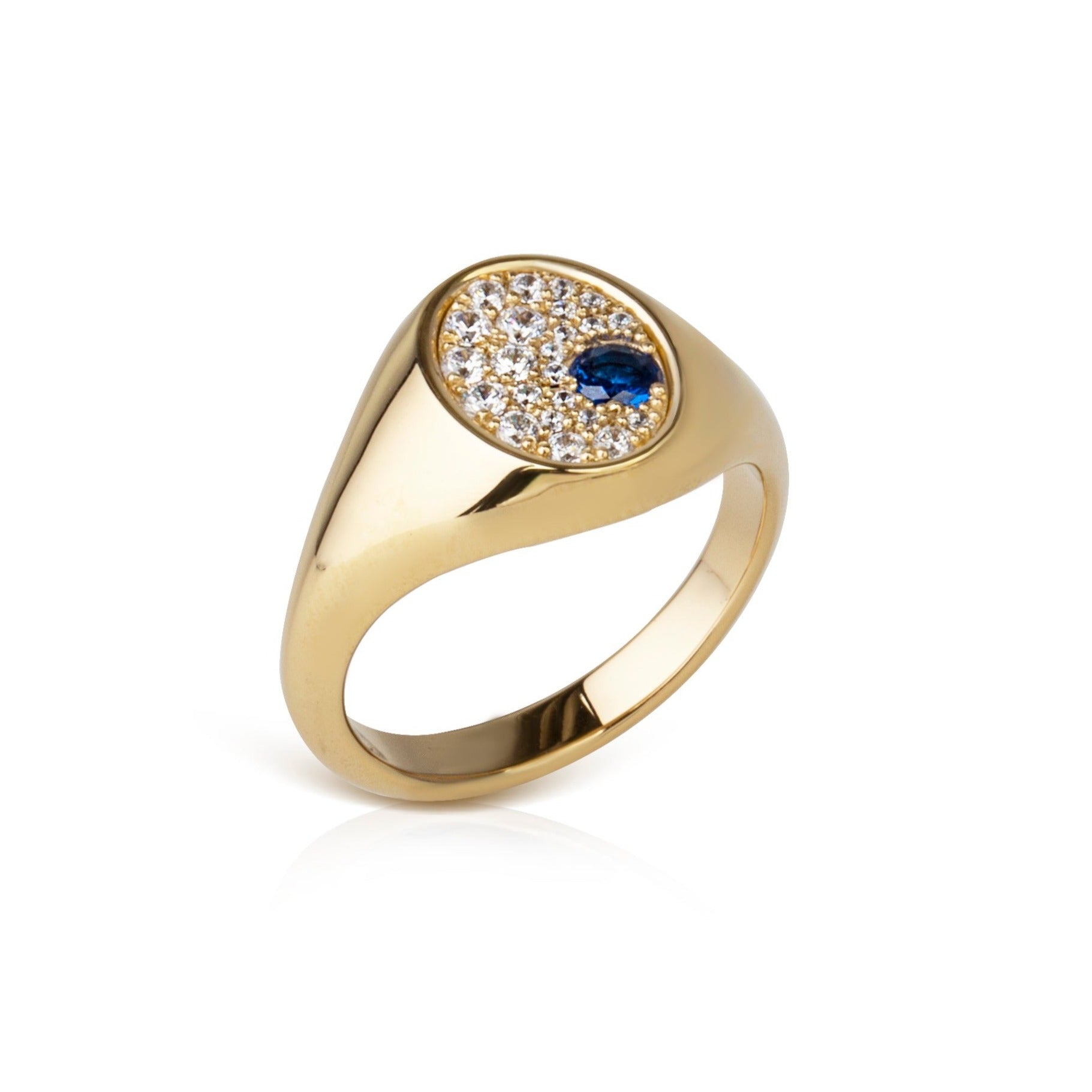 Sapphire Moon and Sun - Diamond Signet Ring For Women