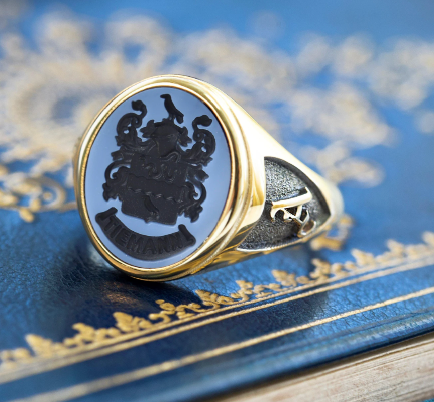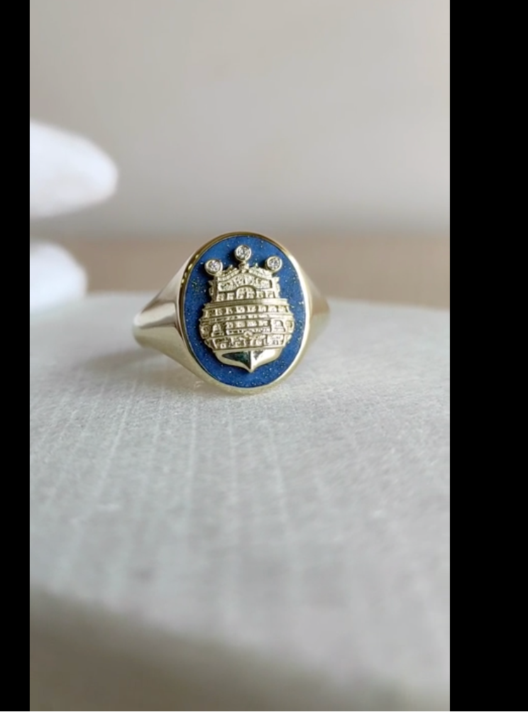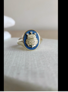 Custom Order - Blue Agate Signet Ring - Raised Coat of Arms Ring