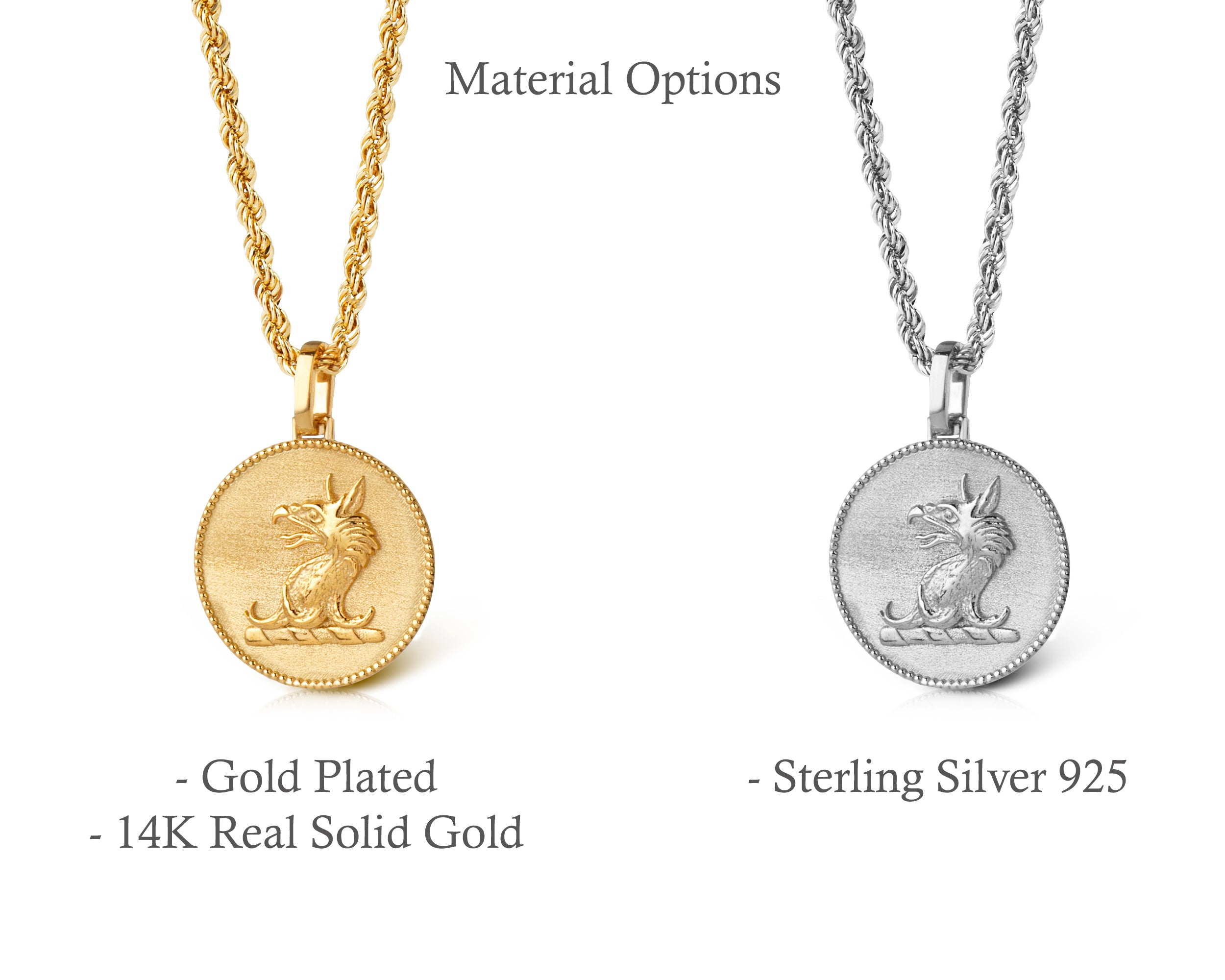 Our collection of round pendants with unique designs on top are made for both men and women. Our stag necklace can be personalized on the back with a custom message of your choice.