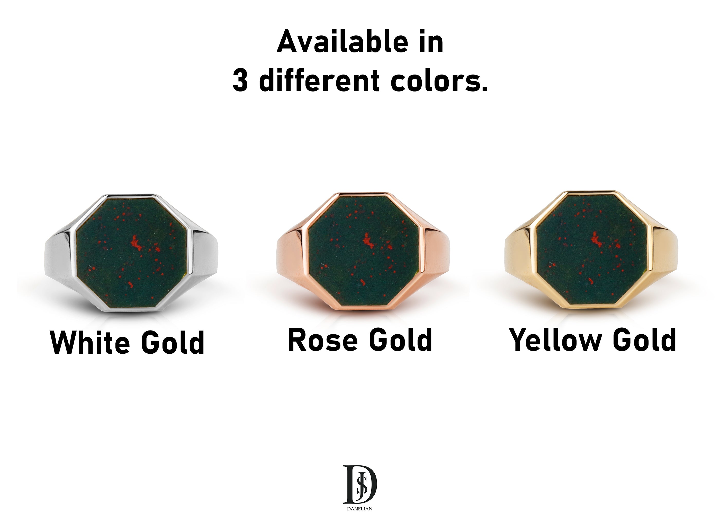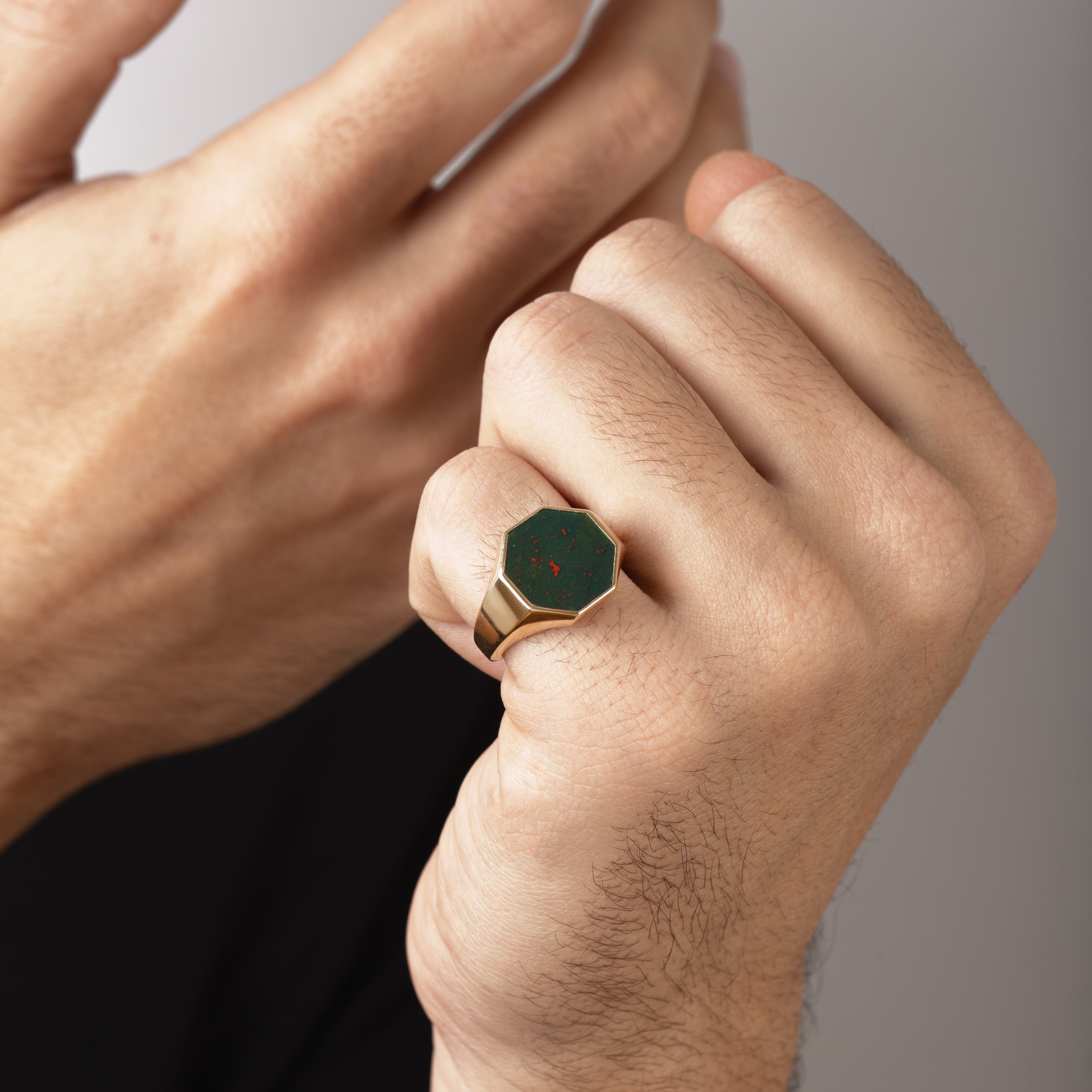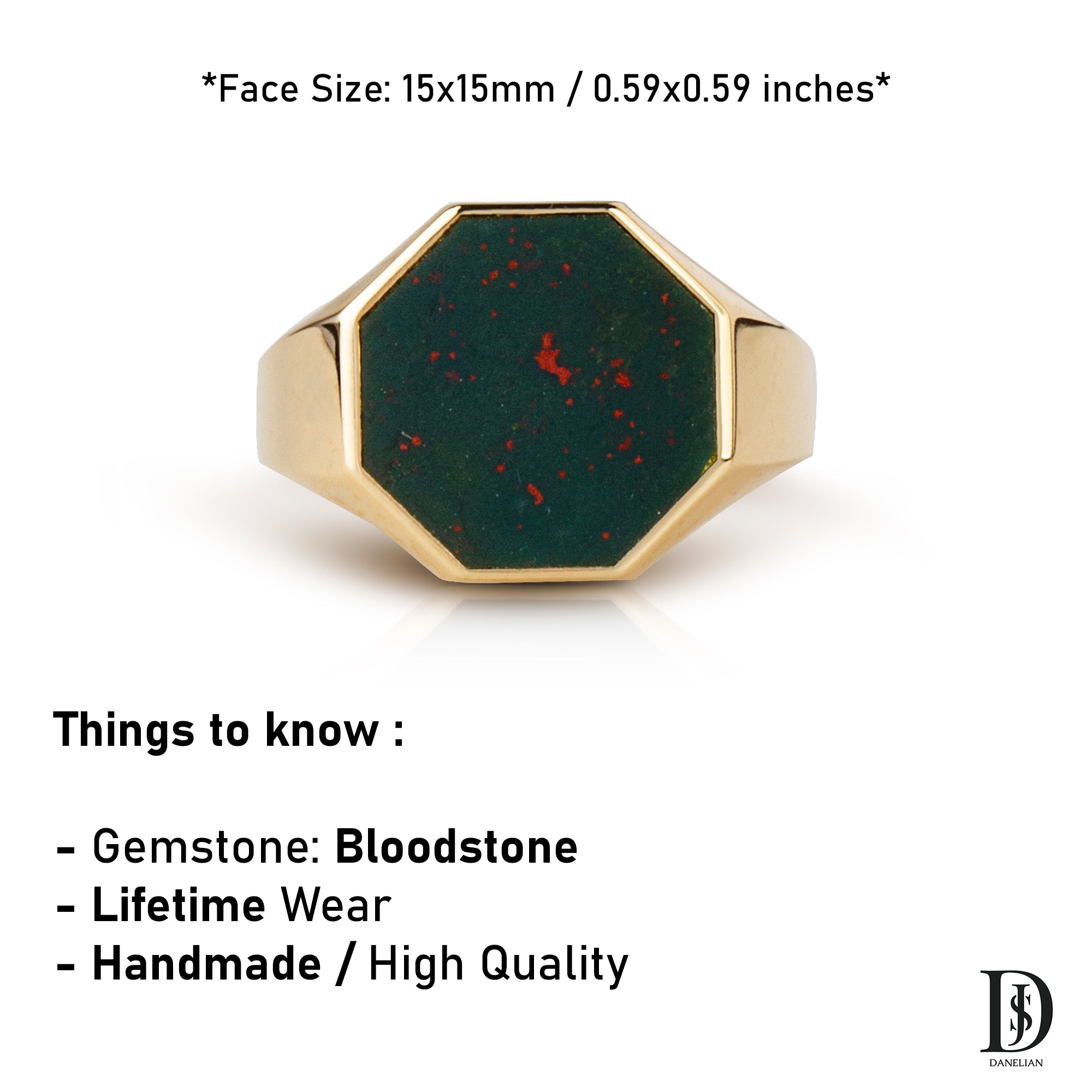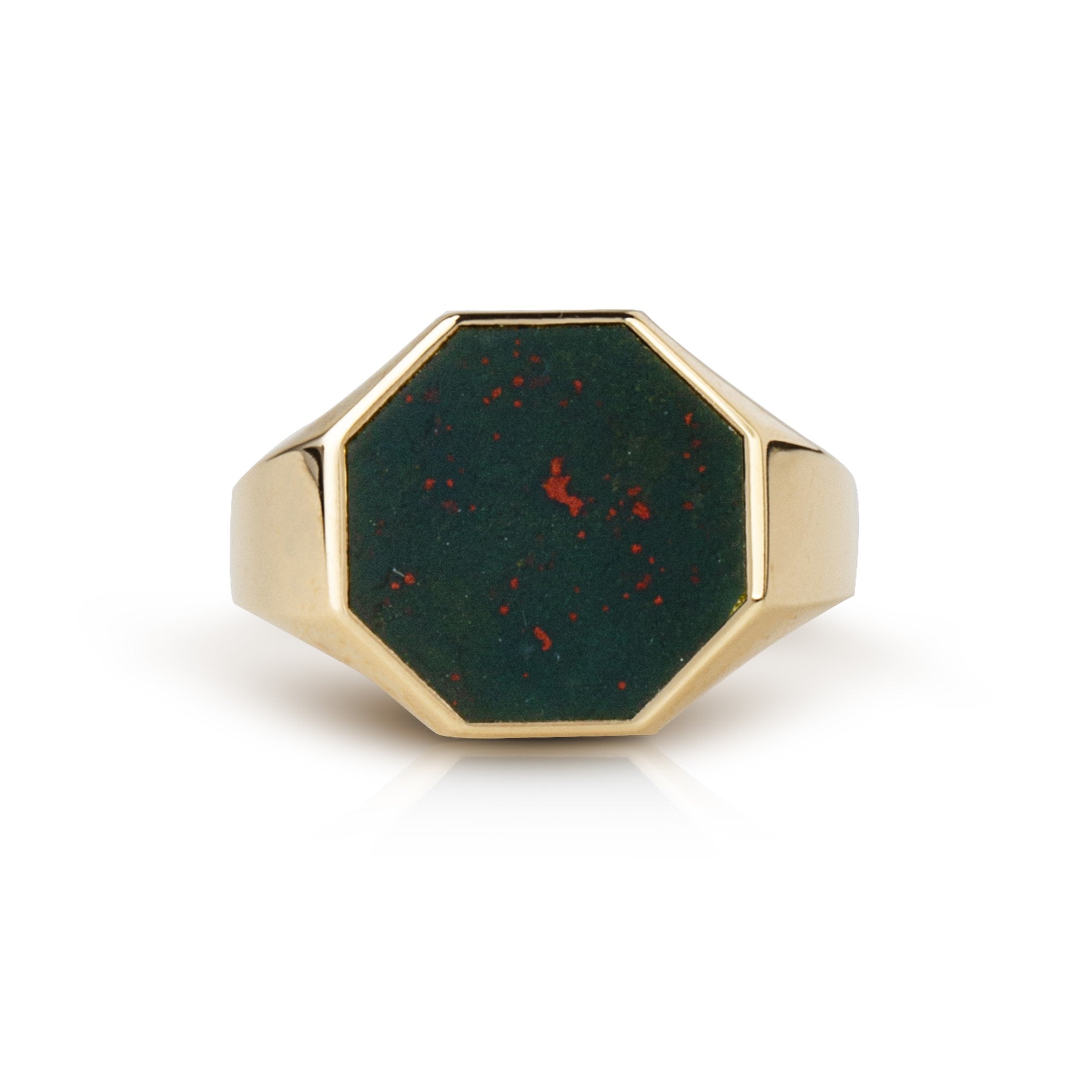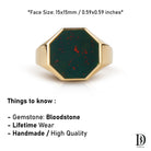 Meet our bloodstone signet ring with a unique octagon shape. A perfect signet ring for your man, husband, father even your graduating kids.